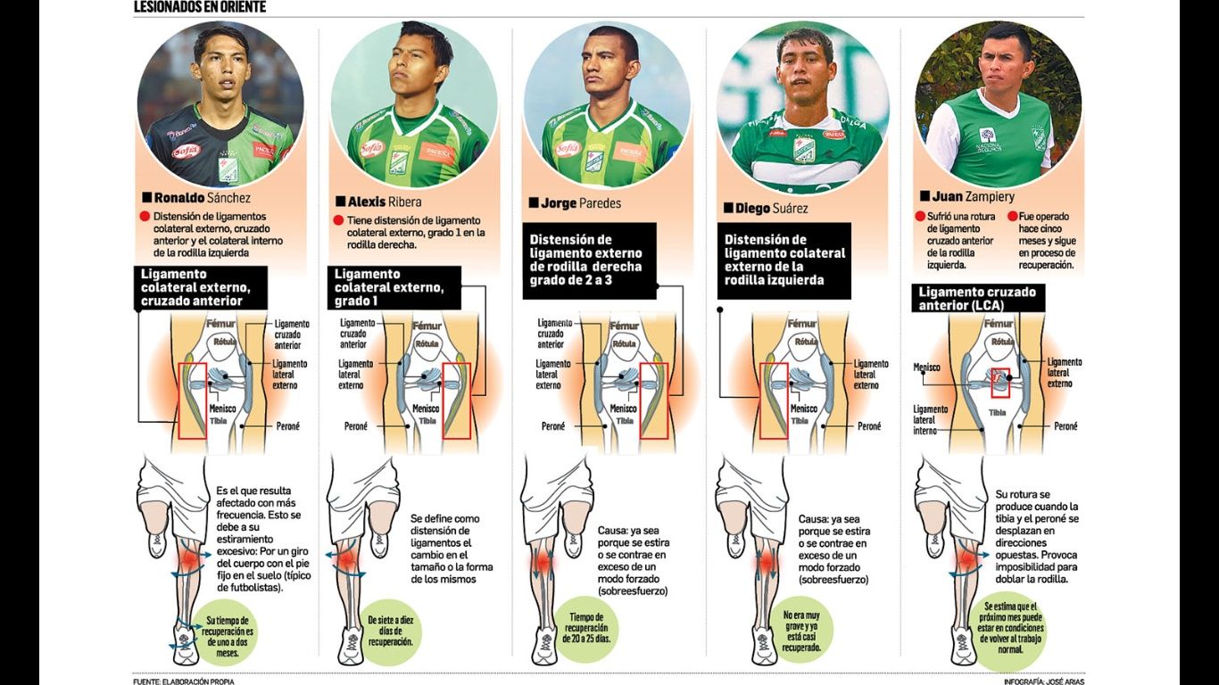 Oriente padece una ‘epidemia’ de lesiones de rodilla, que tiene a cinco jugadores al margen y preocupado al técnico, Juan Manuel Llop, que reconoció que eso le impide tener variantes para hacer recambios en su equipo. Los albiverdes recibirán el domingo a Wilstermann y no contarán con Jorge Paredes, Alexis Ribera ni Ronaldo Sánchez, titulares en este torneo y que tienen lesiones de rodilla, al igual que Juan Carlos Zampiery y Diego Suárez, que están en etapa de recuperación.
