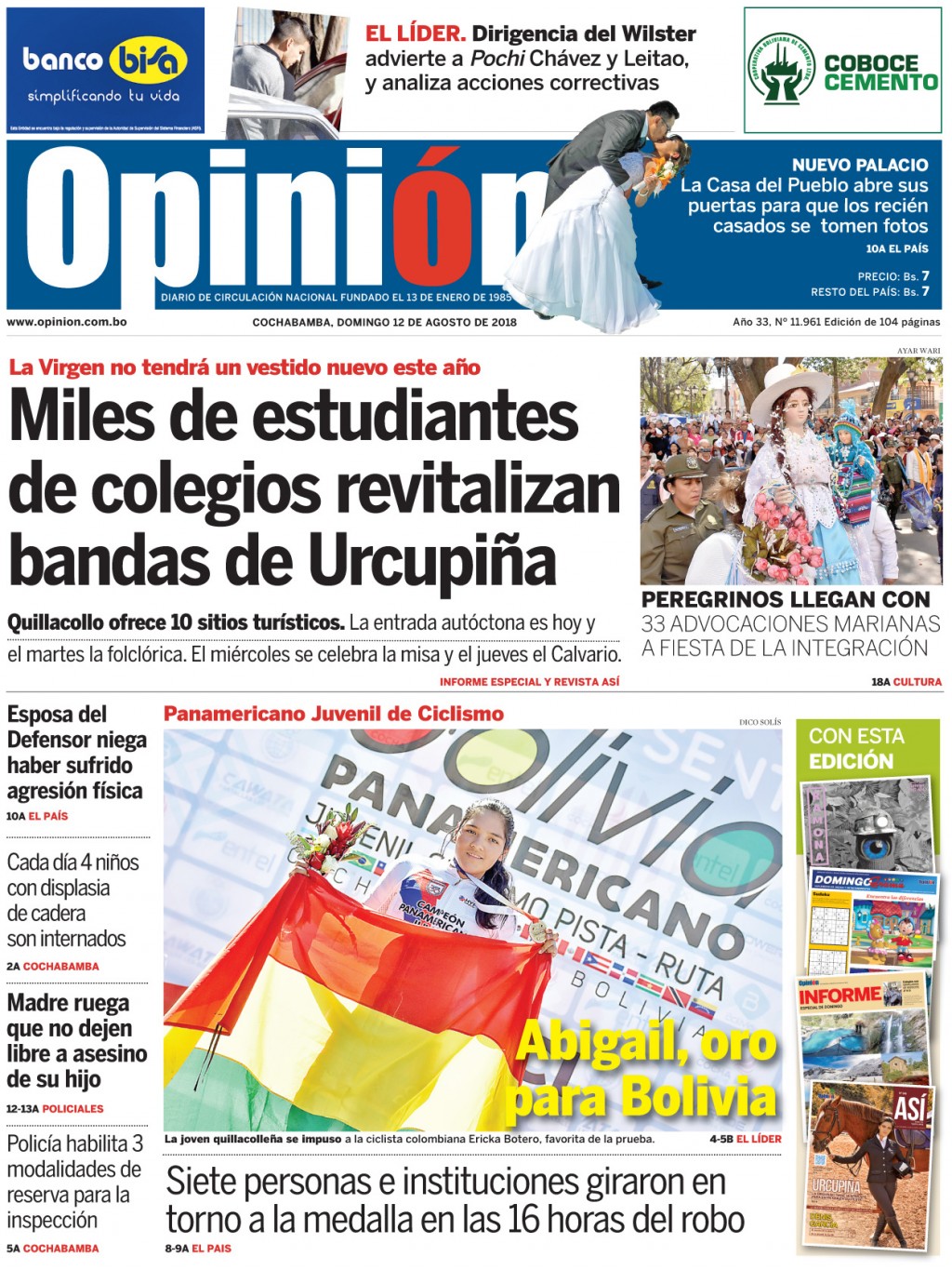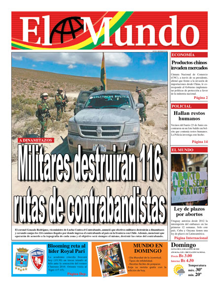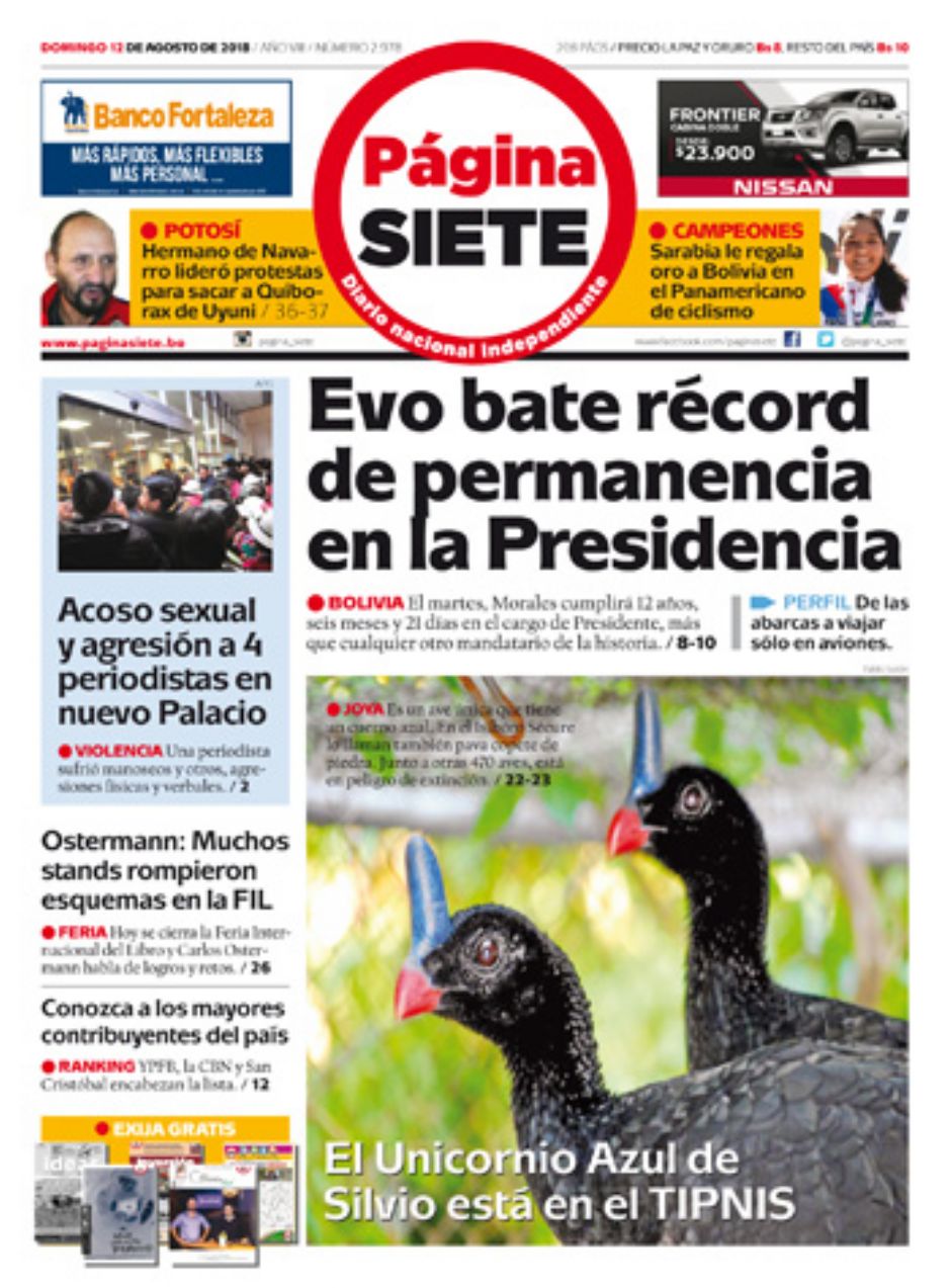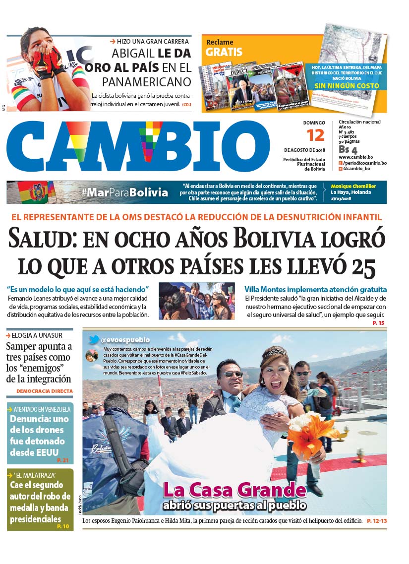 Portadas de periódicos de Bolivia del domingo 12 de agosto de 2018Categorías MonitoreoEtiquetas , Portadas de periódicos 12/08/2018 El Deber – Los Tiempos – El Día – La Razón – Cambio – El Diario – Página Siete – Opinión
