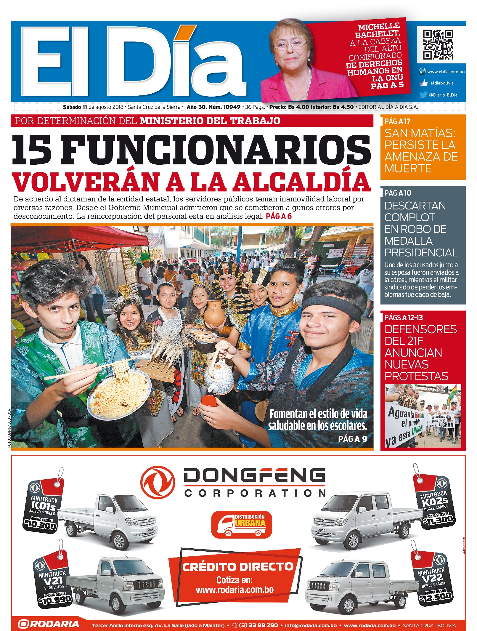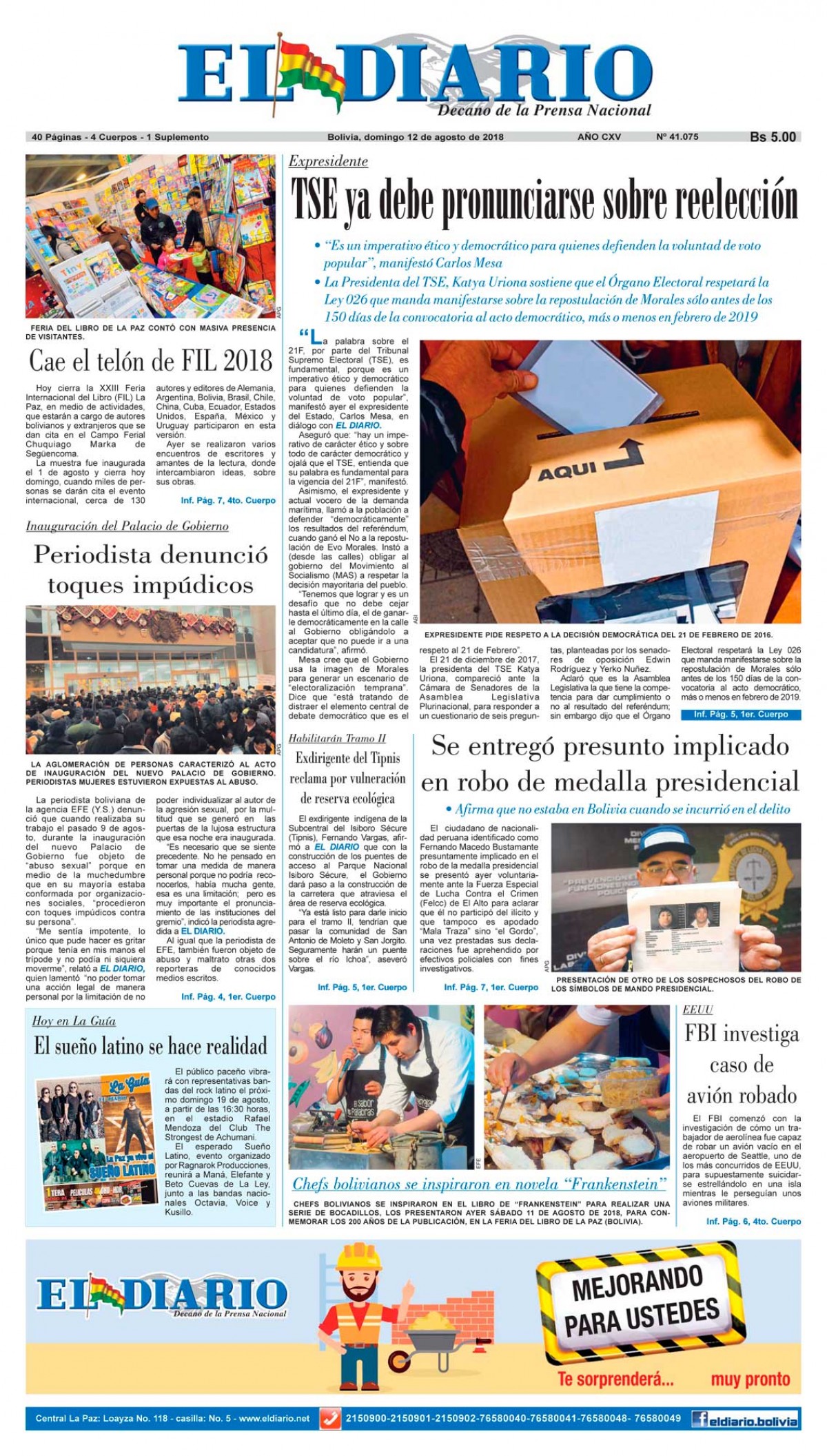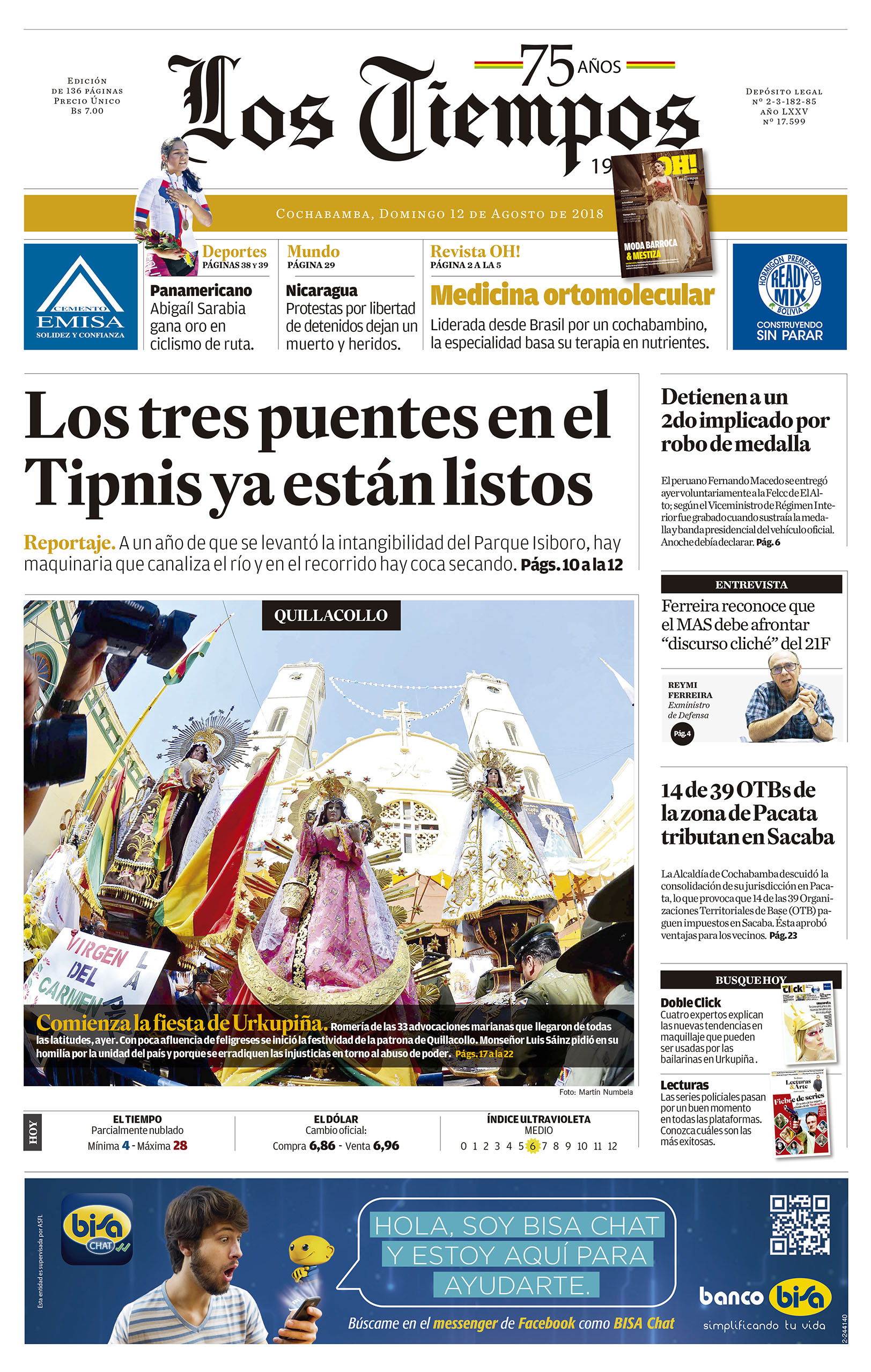 Portadas de periódicos de Bolivia del domingo 12 de agosto de 2018Categorías MonitoreoEtiquetas , Portadas de periódicos 12/08/2018 El Deber – Los Tiempos – El Día – La Razón – Cambio – El Diario – Página Siete – Opinión