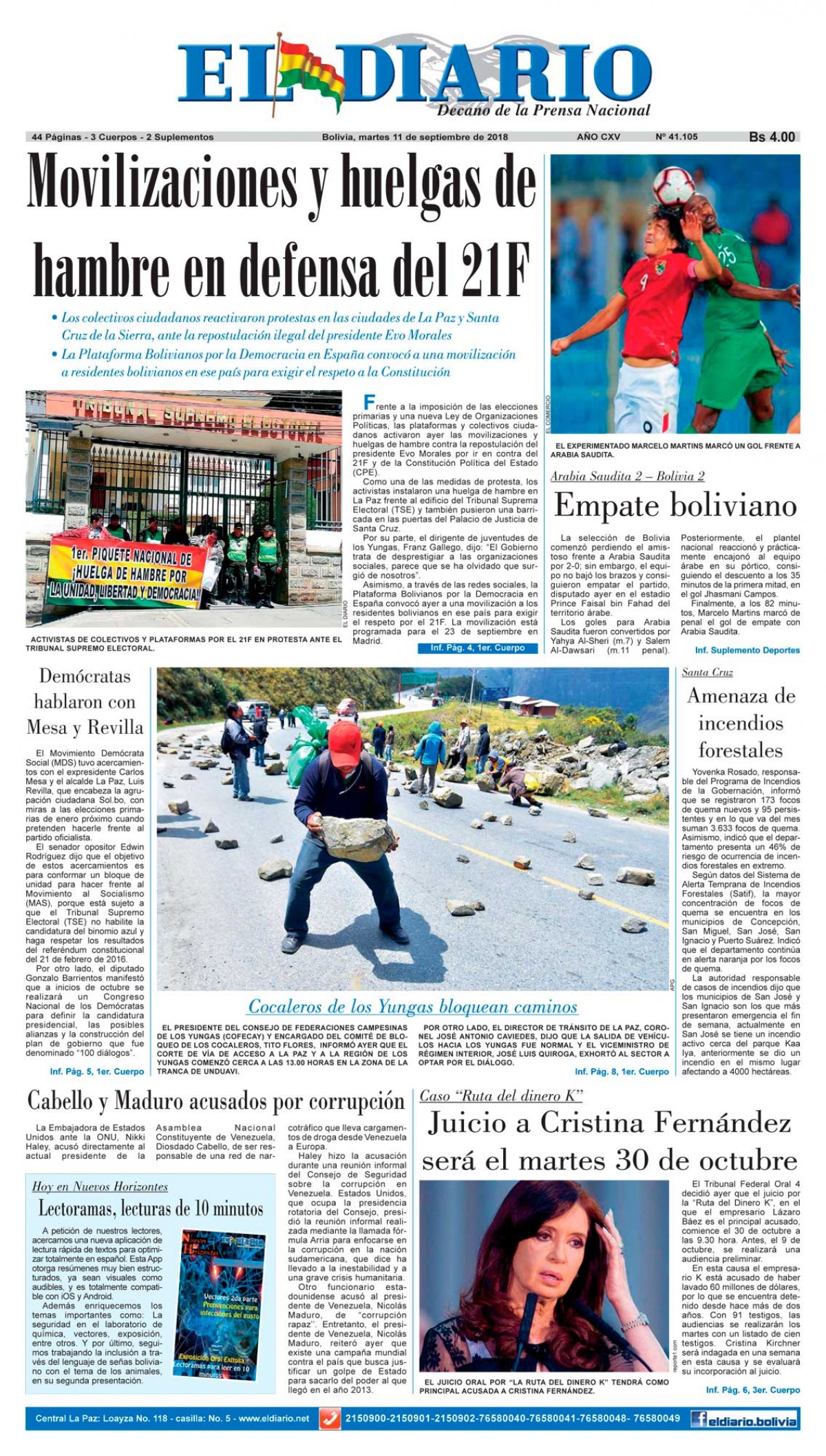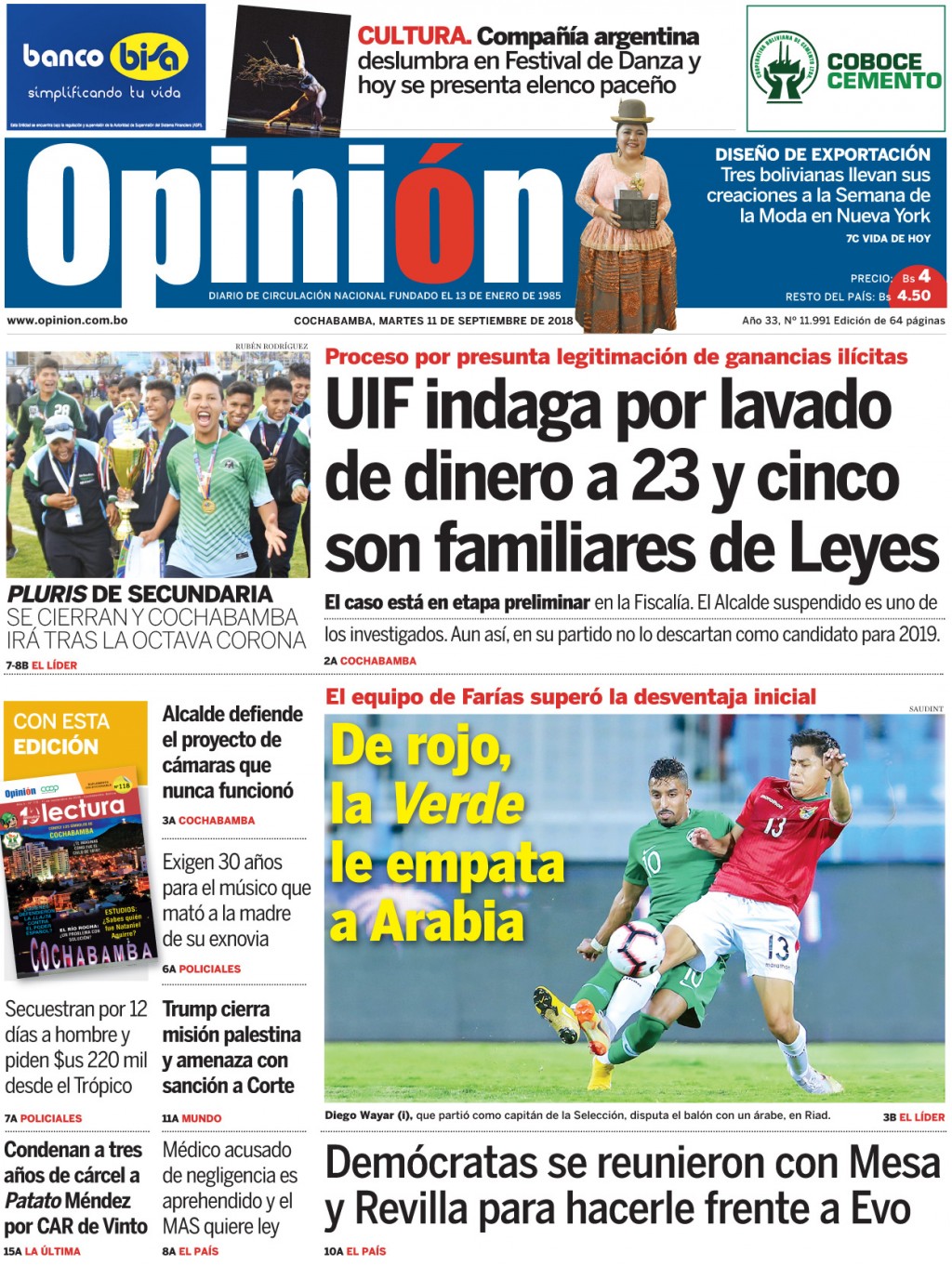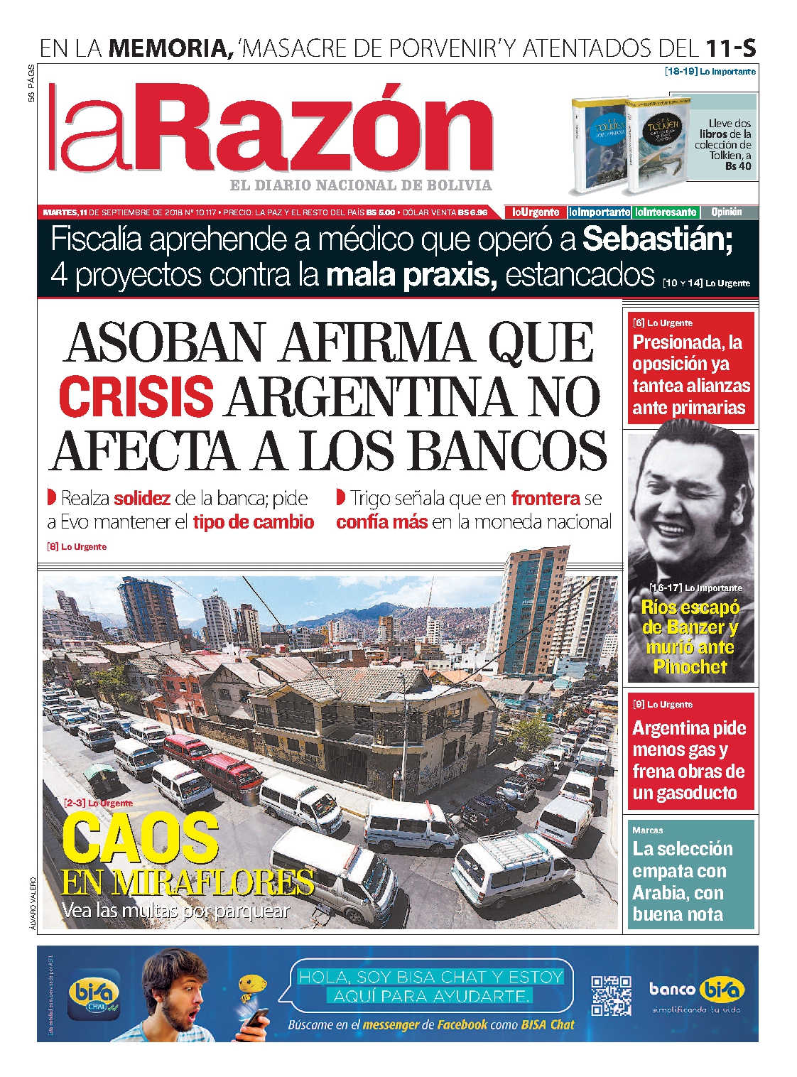 Portadas de periódicos de Bolivia del martes 11 de septiembre de 2018Categorías MonitoreoEtiquetas , Portadas de periódicos 11/09/2018 El Deber – Los Tiempos – El Día – La Razón – Cambio – El Diario – Página Siete – Opinión