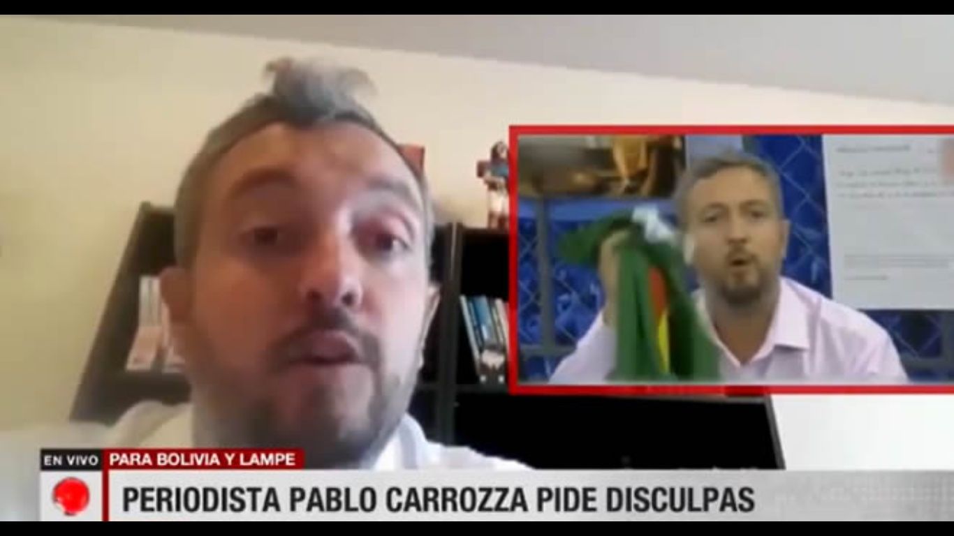 «Soy Pablo Carrozza y quiero decirle a todo el pueblo boliviano, que jamás he tenido la intención de lastimarlos, agredirlos, ofenderlos o discriminarlos. Tengo profundo respeto y cariño por la camiseta de su país. Acá estoy para poner la cara para mirarlos a los ojos y para pedirles disculpas a todo aquel que se haya sentido ofendido y discriminado por algo de lo que pude haber dicho o por alguna crítica a Carlos Lampe. También le pido disculpas al arquero de Boca y a toda su familia».