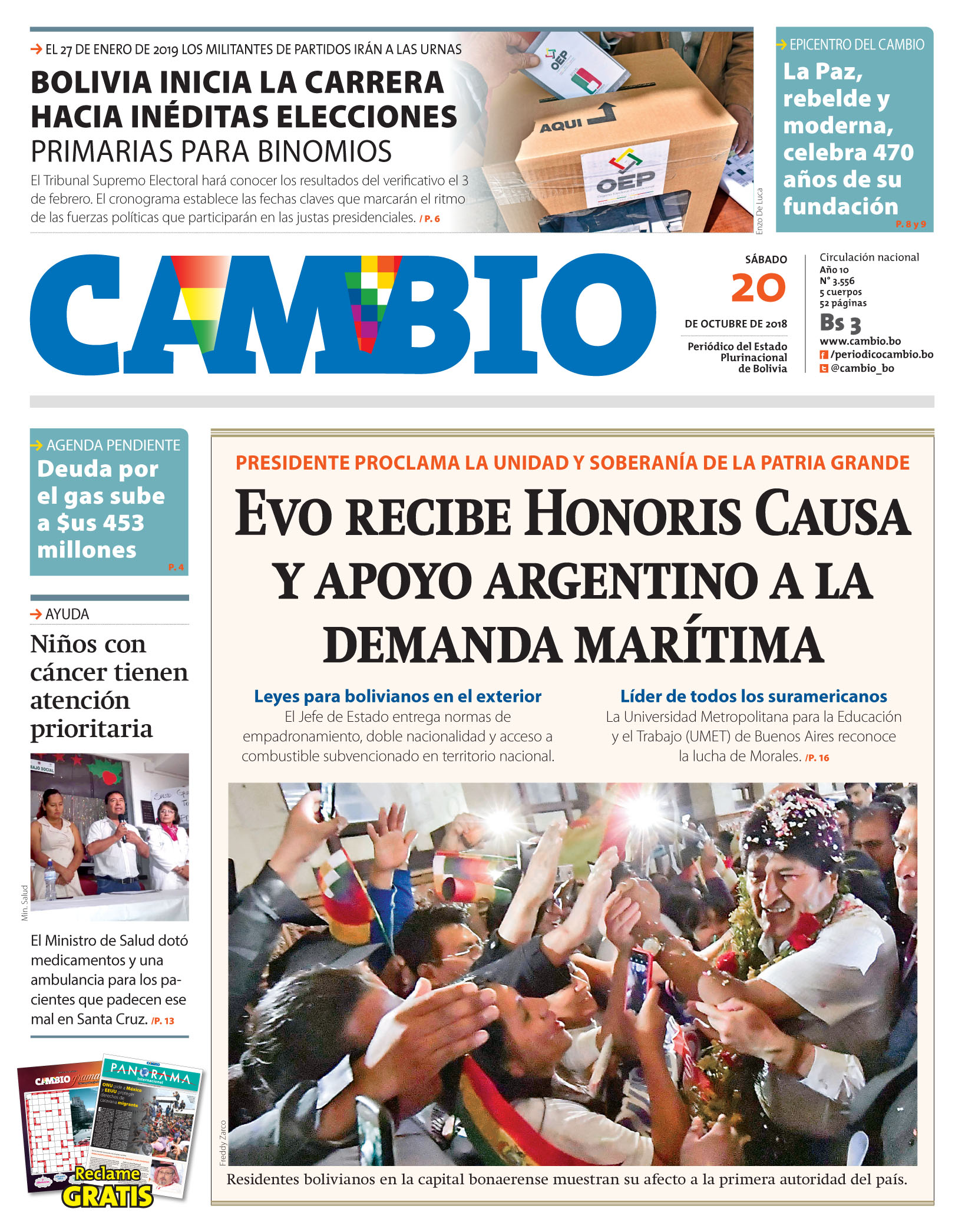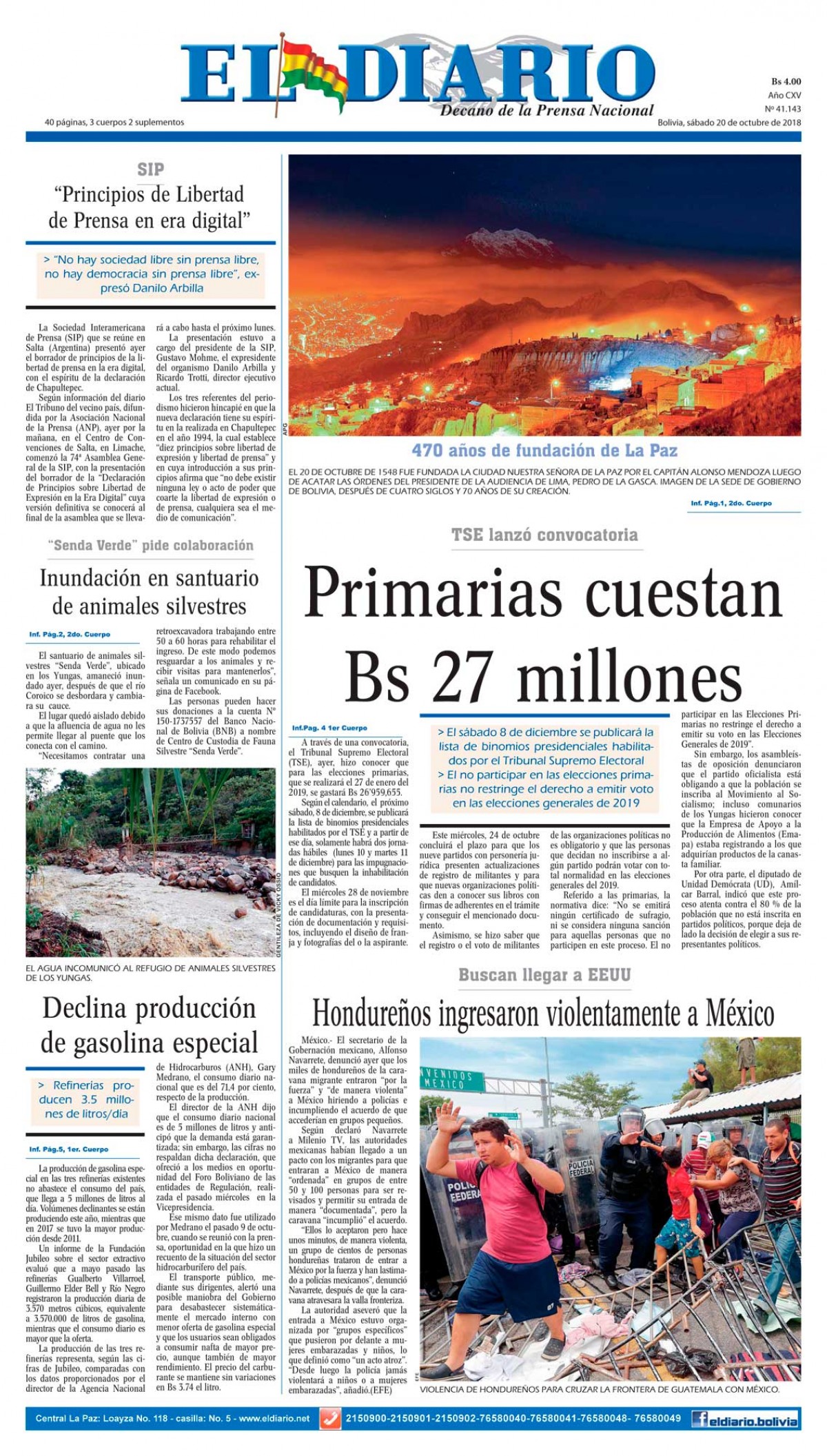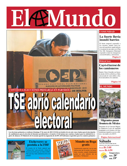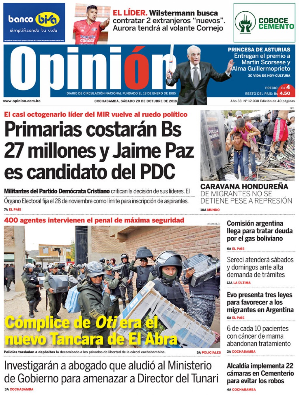 Portadas de periódicos de Bolivia del sábado 20 de octubre de 2018Categorías MonitoreoEtiquetas , Portadas de periódicos 20/10/2018 El Deber – Los Tiempos – El Día – La Razón – Cambio – El Diario – Página Siete – Opinión