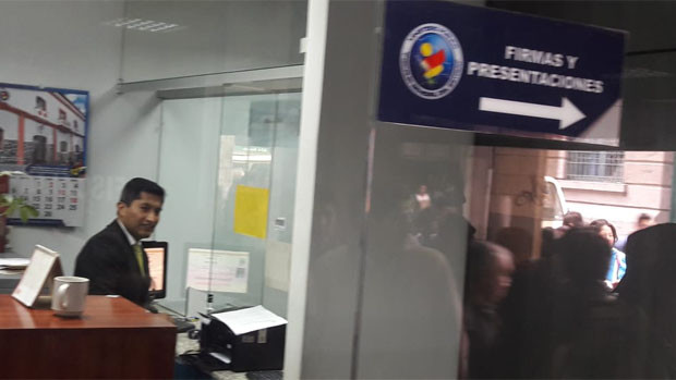 Edwin Blanco atiene en una ventanilla del Ministerio Público en La Paz.