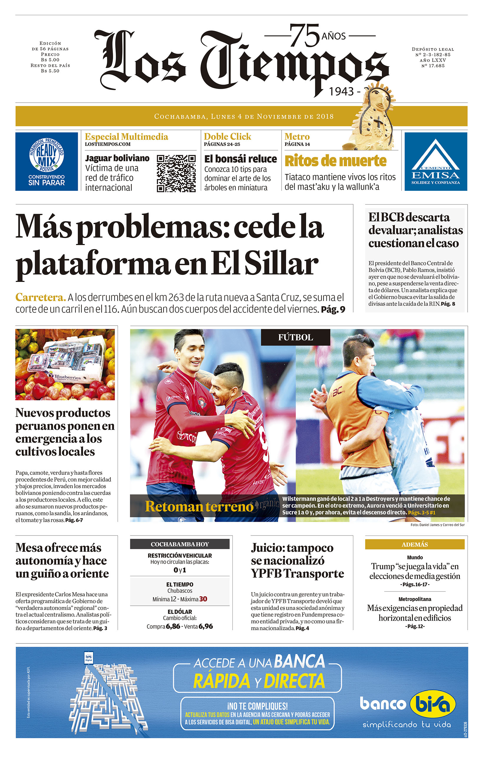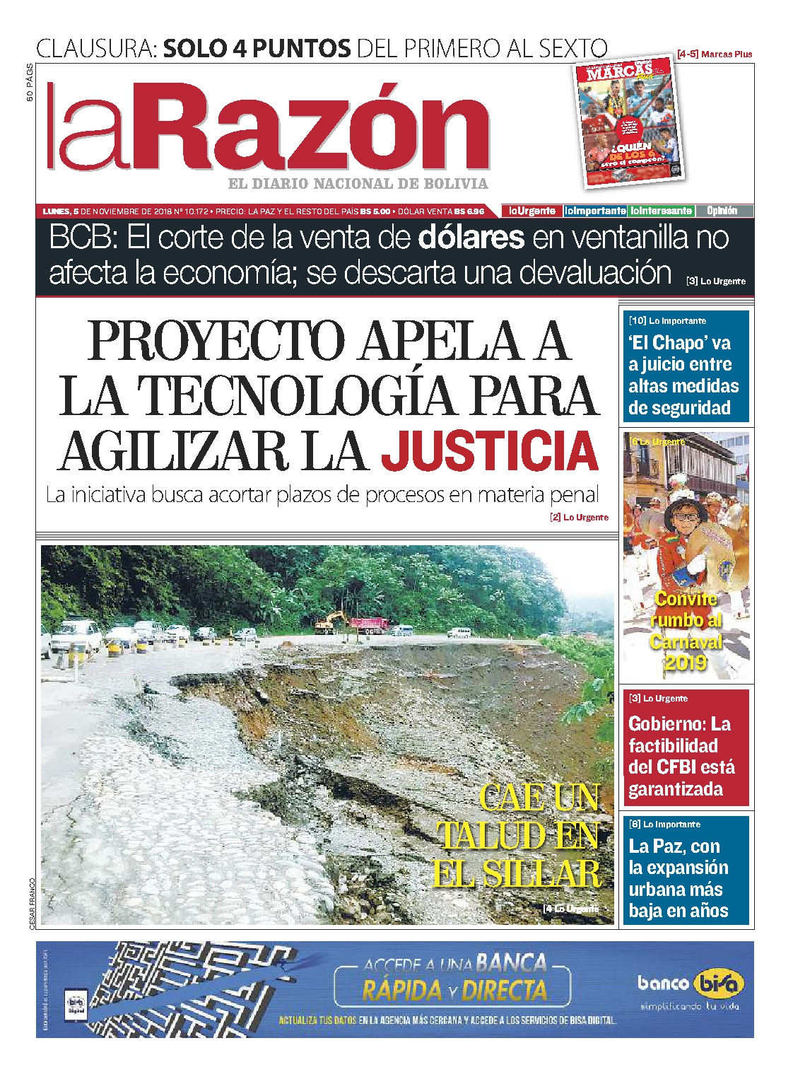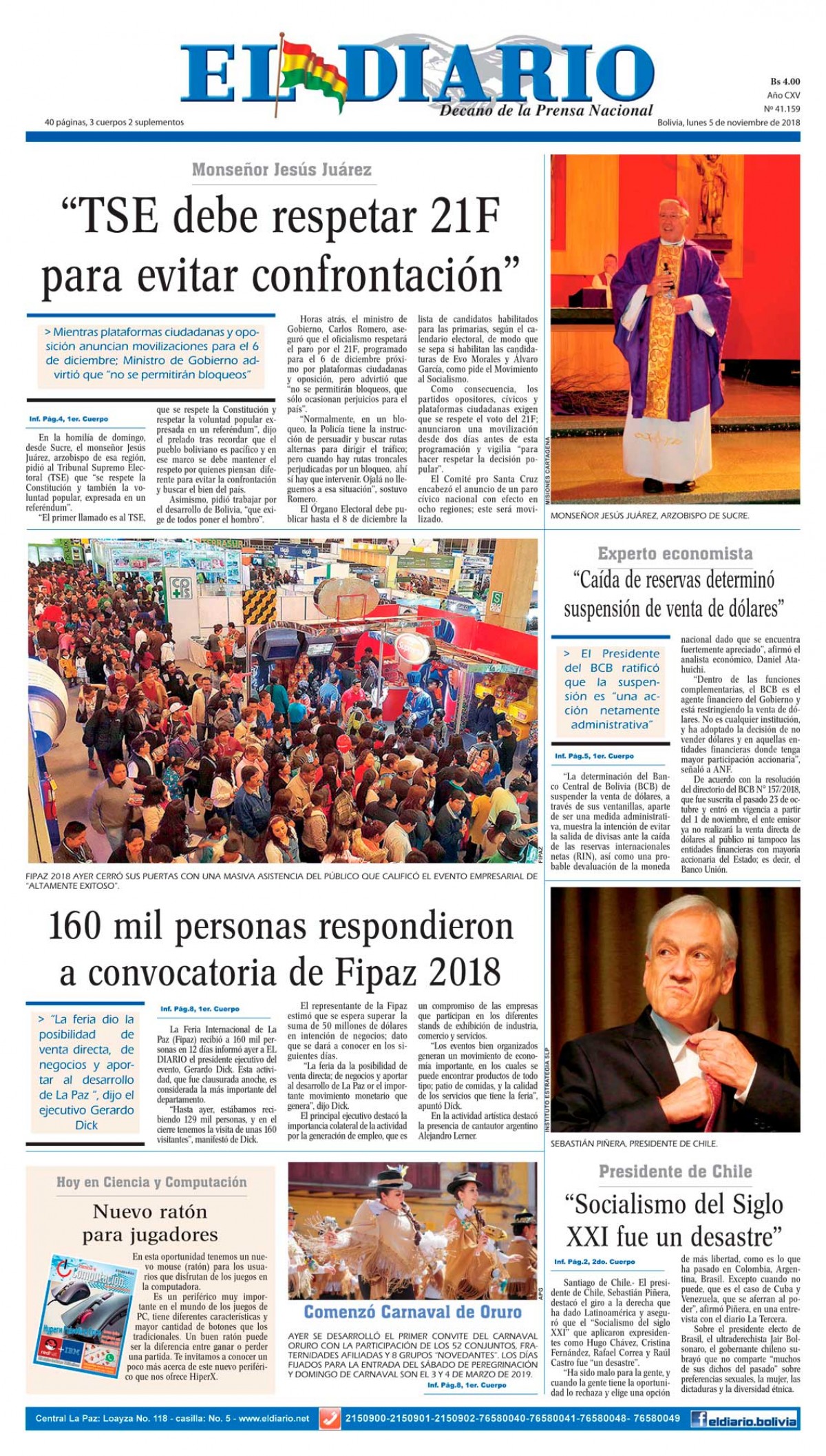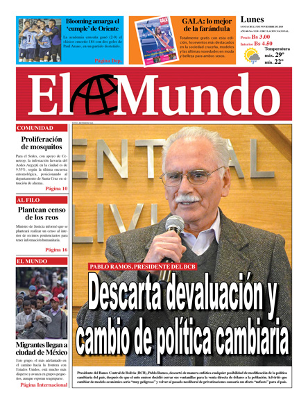 Portadas de periódicos de Bolivia del lunes 5 de noviembre de 2018Categorías MonitoreoEtiquetas , Portadas de periódicos 05/11/2018 El Deber – Los Tiempos – El Día – La Razón – Cambio – El Diario – Página Siete – Opinión