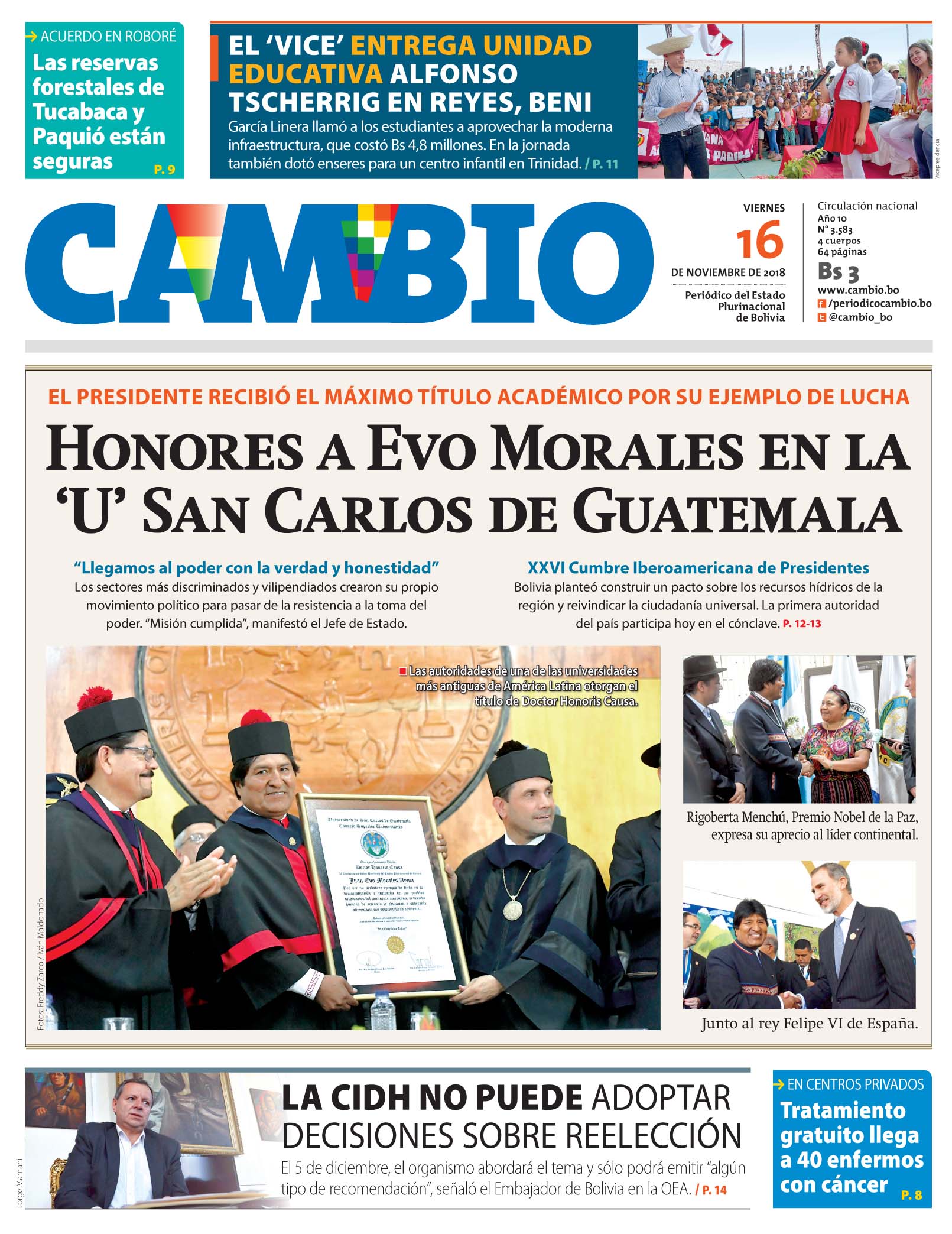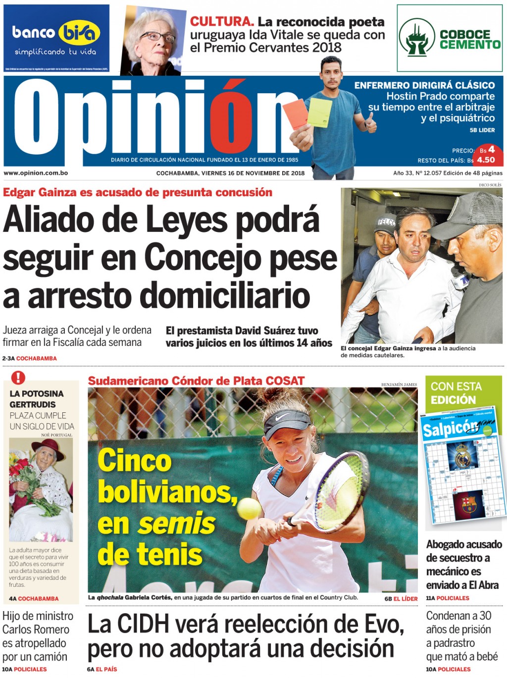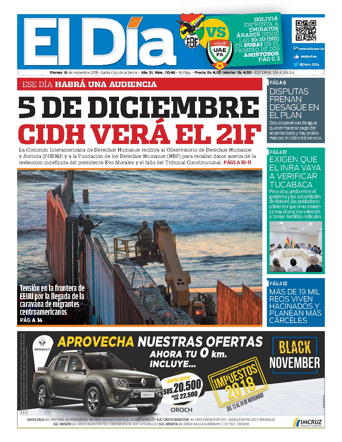 Portadas de periódicos de Bolivia del viernes 16 de noviembre de 2018