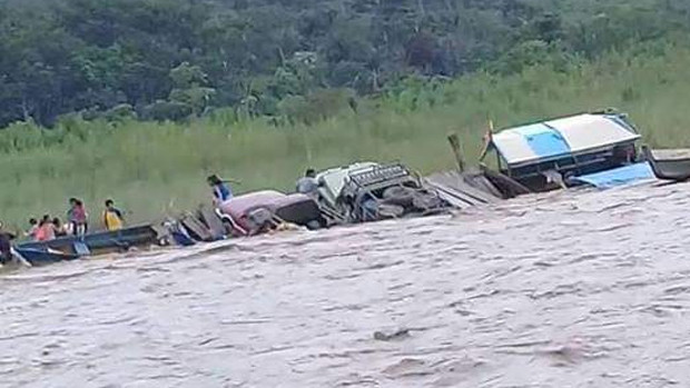 Según el informe, el pontón se dirigía de Mapiri hacia Charompampa y llevaba al menos a una camioneta, un taxi, además de varias motocicletas.