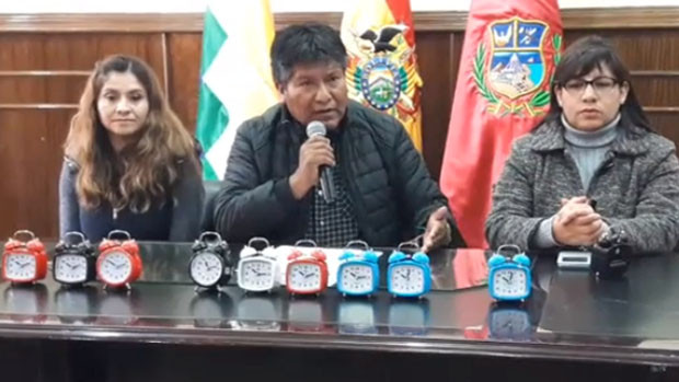 Gobernador de Oruro premia a puntuales y regala relojes a tardones