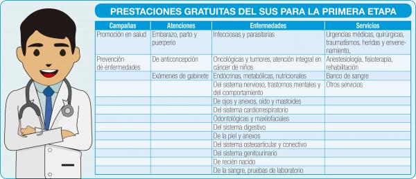 El Sistema Único de Salud (SUS) comenzará en enero del siguiente año con el registro de los beneficiarios del nuevo modelo, que se estima son el 51% de la población que actualmente carece de un seguro. Esa etapa durará dos meses, de modo que la primera semana de marzo se iniciará el servicio gratuito.
