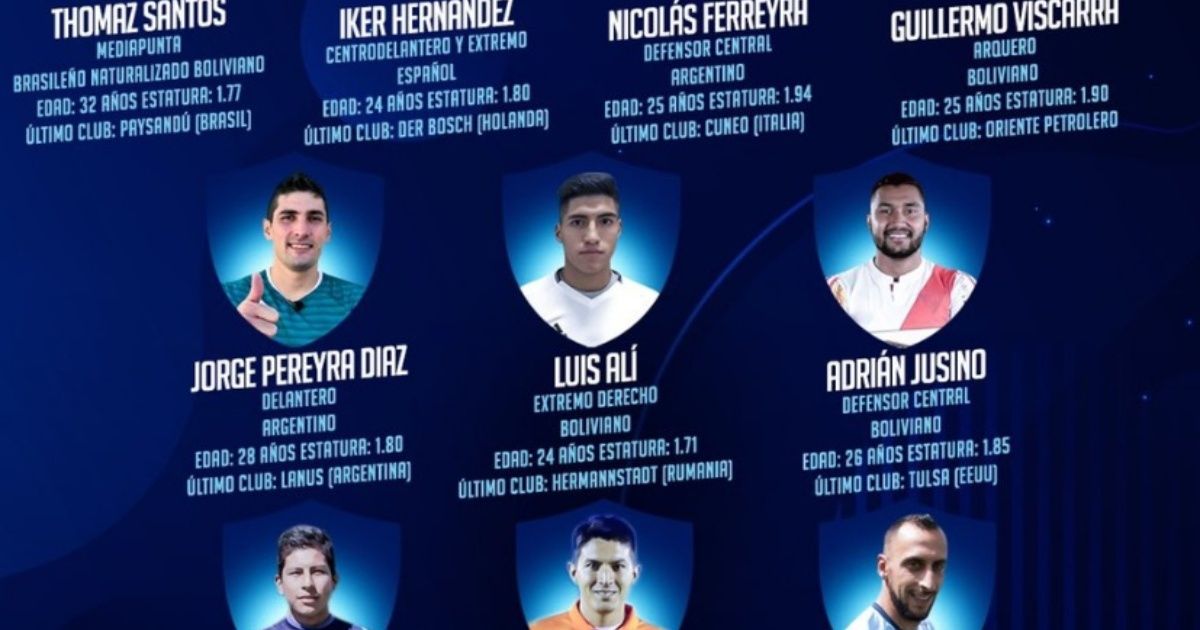 Además de ellos tres, se sumarán al plantel los delanteros Iker Hernández, de España, y Jorge Pereyra Díaz, de Argentina. El otro refuerzo argentino es el central Nicolás Ferreyra. Completan los refuerzos los nacionales Luis Alí (extremo derecho), Adrián Jusino (defensor) y Erick Cano (extremo izquierdo). Claure confirmó también que se renovó con Mauricio Prieto, defensor central uruguayo.