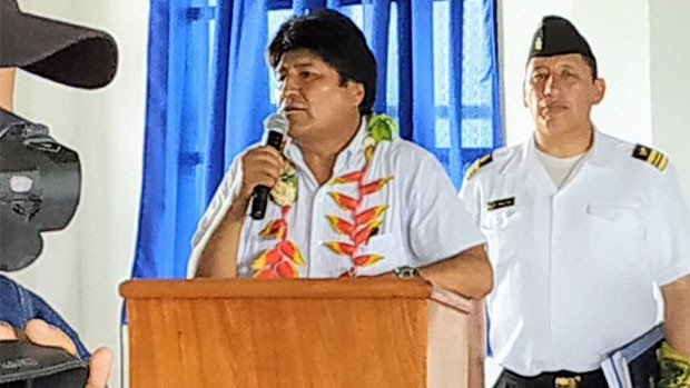 Morales dio un mensaje de año nuevo en un acto en Puerto Suárez. Foto: @mincombolivia