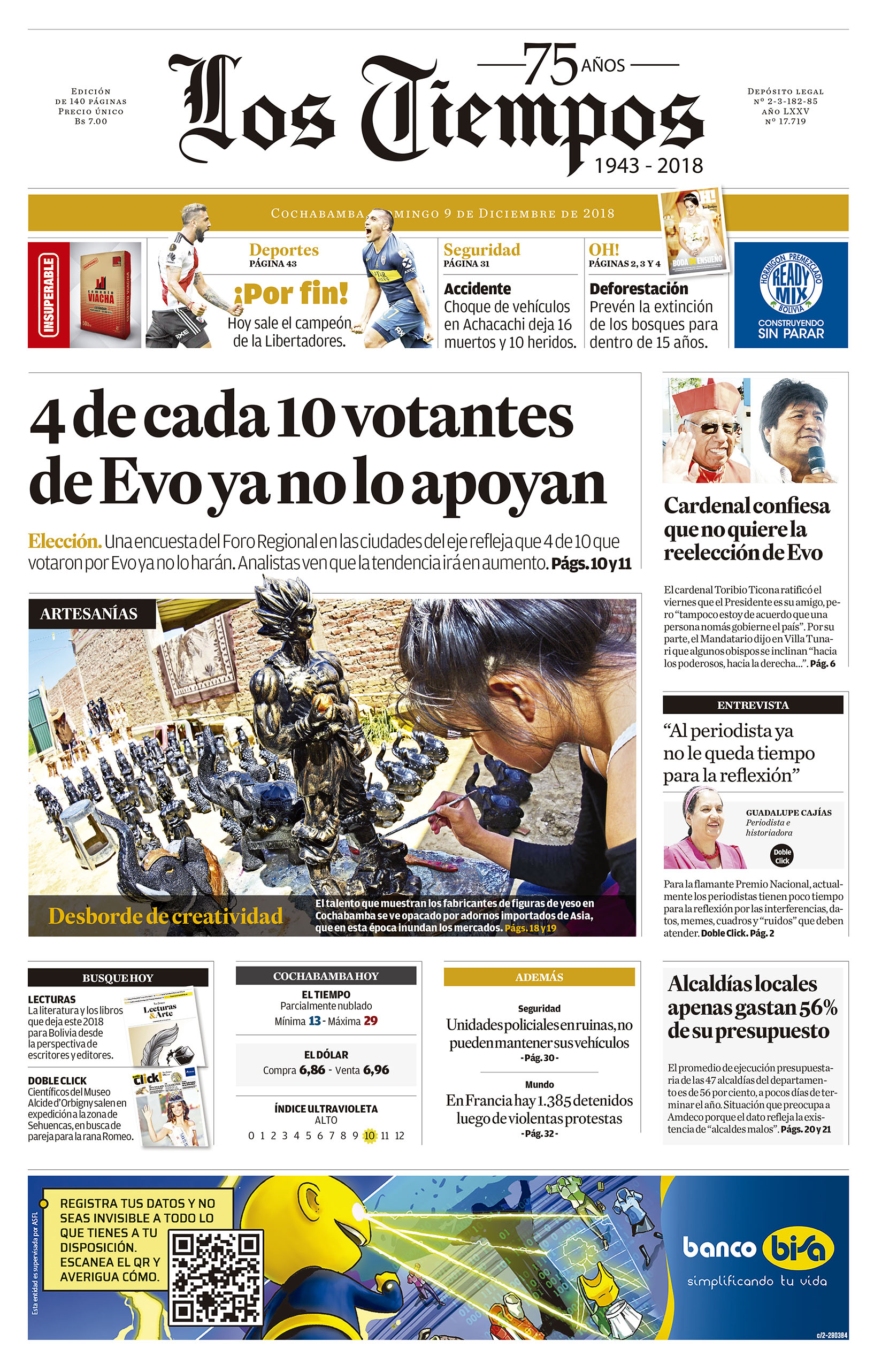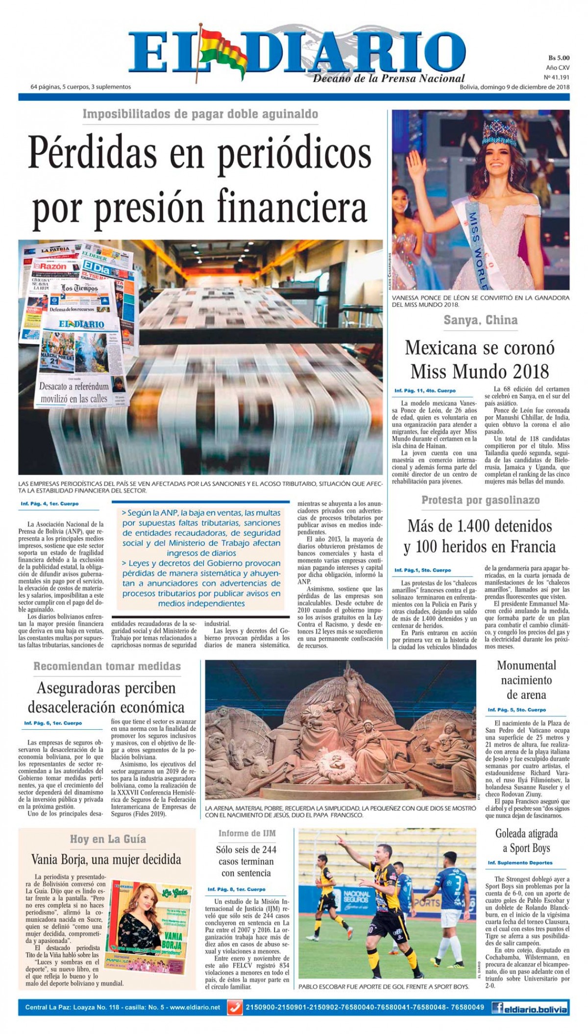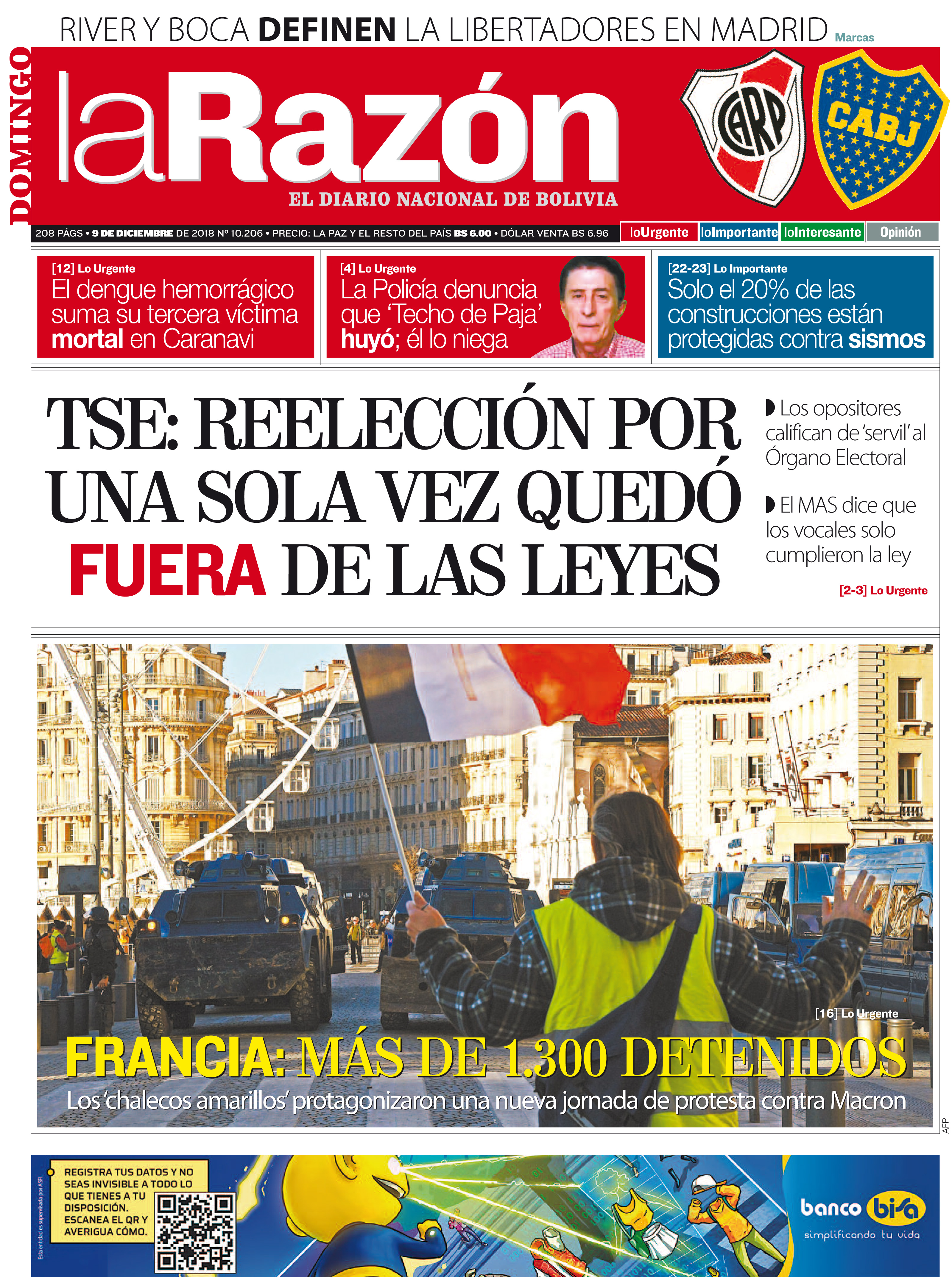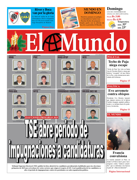 Portadas de periódicos de Bolivia del domingo 9 de diciembre de 2018Categorías MonitoreoEtiquetas , Portadas de periódicos 09/12/2018 El Deber – Los Tiempos – El Día – La Razón – Cambio – El Diario – Página Siete – Opinión