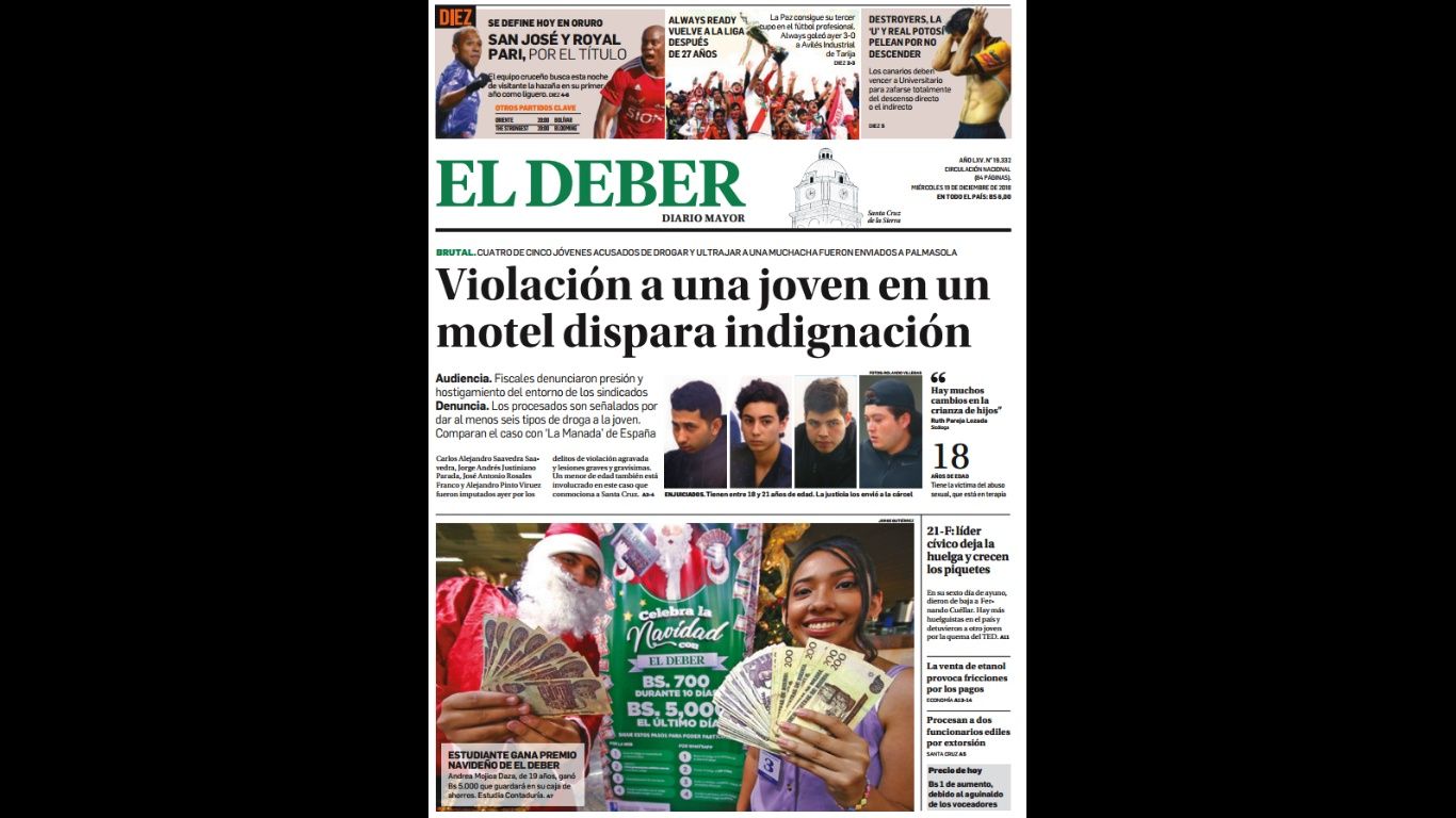 Portadas de periódicos de Bolivia del miércoles 19 de diciembre de 2018
