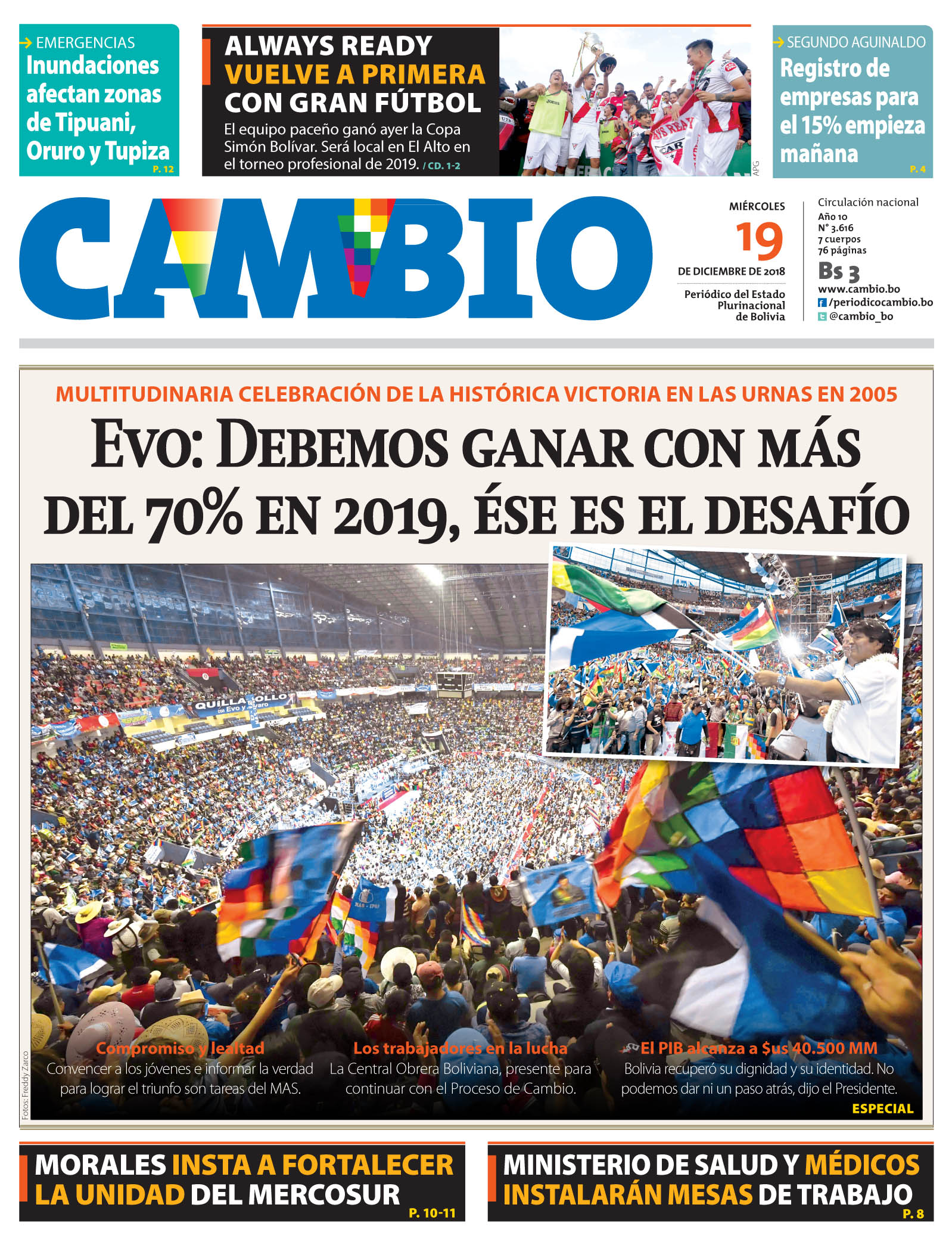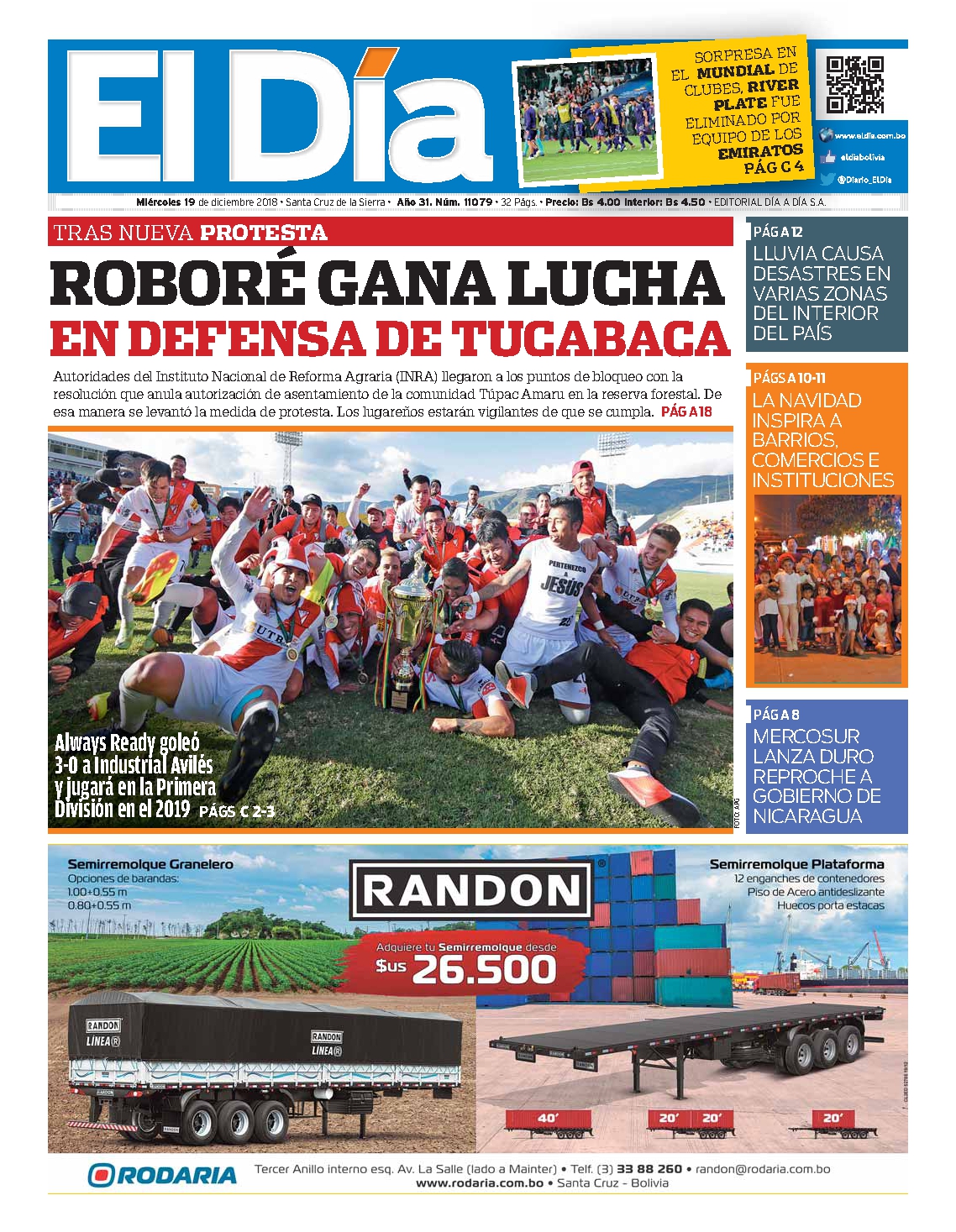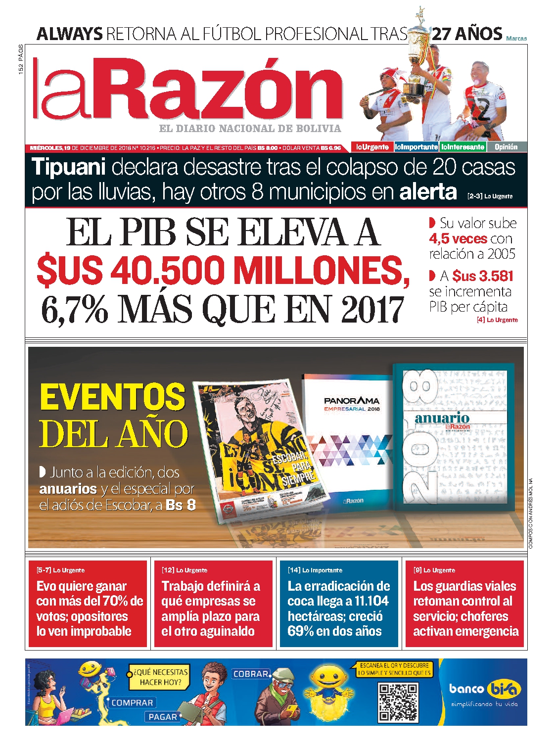 Portadas de periódicos de Bolivia del miércoles 19 de diciembre de 2018