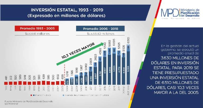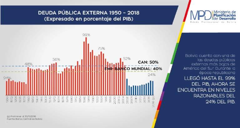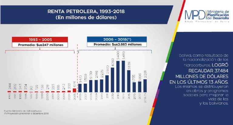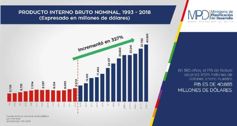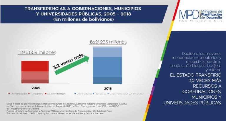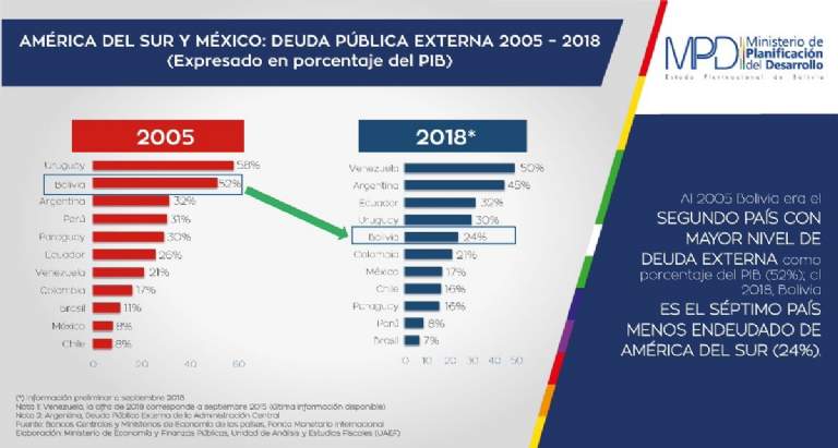El presidente Evo Morales hizo un repaso de sus 13 años en el gobierno y comparó con el año 2005 cuando -según dijo- finalizó la era de los gobiernos neoliberales. Su discurso fue acompañado de diapositivas. Página Siete presenta algunos de los cuadros estadísticos que presentó el Mandatario.