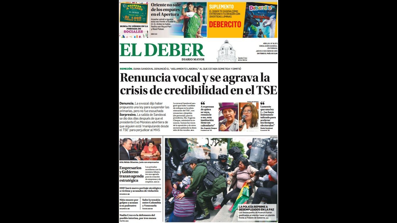 El Deber – Los Tiempos – El Día – La Razón – Cambio – El Diario – Página Siete – Opinión