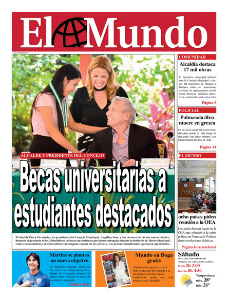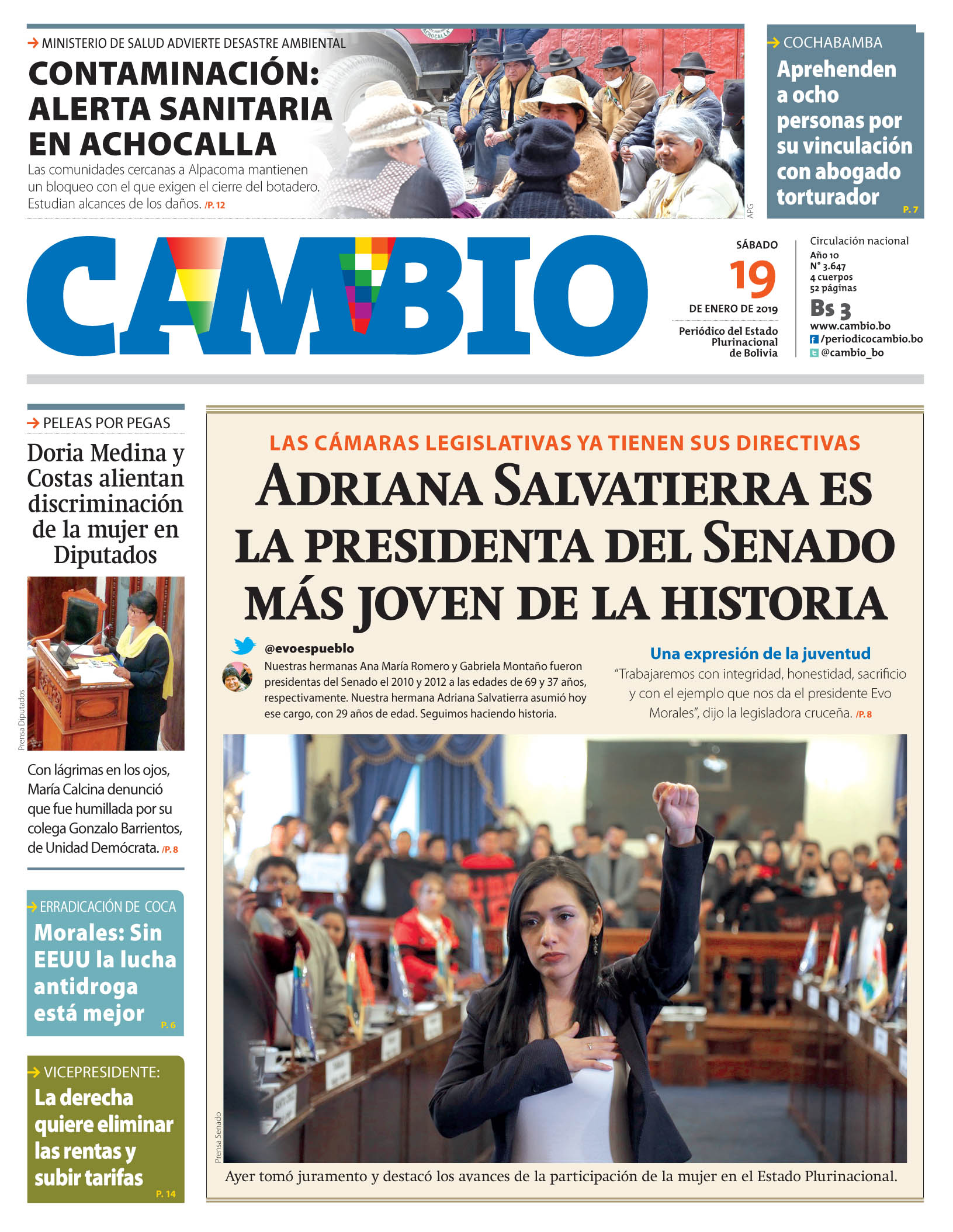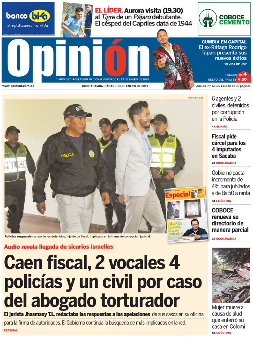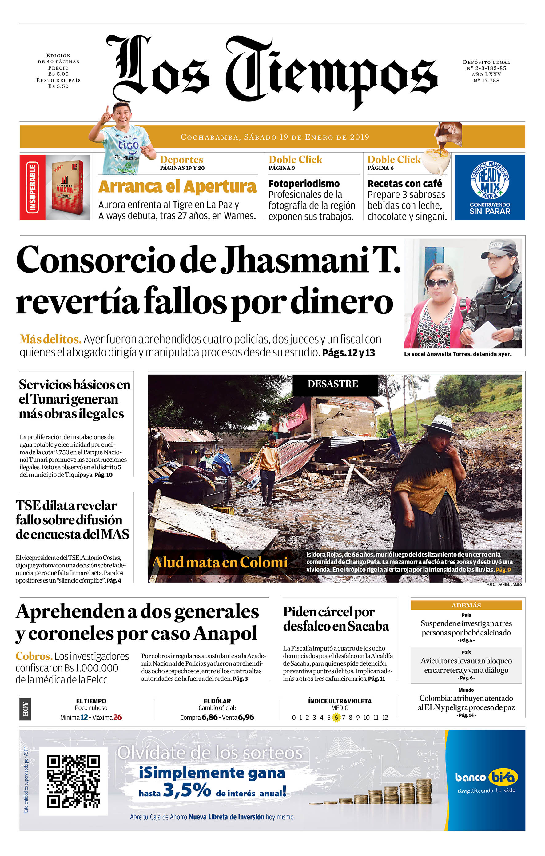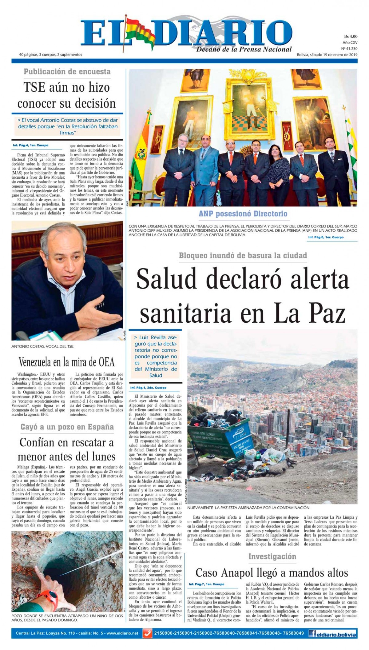 Portadas de periódicos de Bolivia del sábado 19 de enero de 2019