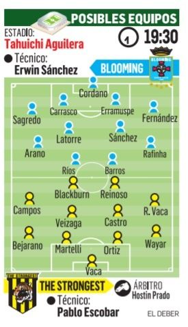 Más allá de lo que Erwin Sánchez preparó en la pizarra y ensayó en la cancha durante los días previos a este duelo, está claro que el deseo de los jugadores de Blooming, está centrado en darse otro abrazo con los hinchas. Lo ansían por la euforia que hoy viven los celestes, con 19 puntos en la tabla y con una racha de cuatro partidos al hilo ganando. El escollo se llama The Strongest (19:30) que también suma 19 y que llega envalentonado al Tahuichi.