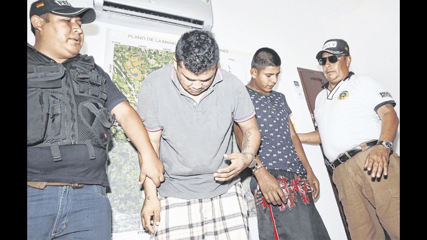 El jefe policial de Warnes, Gilmar Valencia, presentó ayer a los acusados de haber abusado sexualmente de dos adolescentes de 13 años, que fueron dadas por desaparecidas el viernes 15, pero que al día siguiente son halladas cerca del mercado de Satélite Norte.