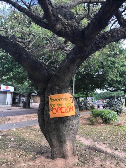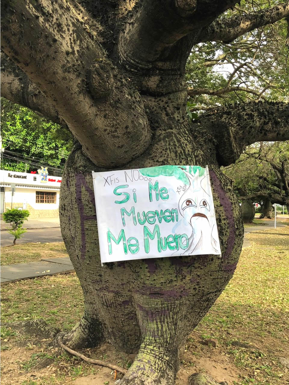 Los carteles que sostienen las ‘petacas’ de éstos árboles tienen un solo mensaje: que no los muevan de allí. La inédita protesta se registra luego de que la comuna cruceña anunciara la ejecución de su nuevo modelo de movilidad urbana, que incluye el ensanchamiento de las vías y es ahí donde los toborochis (y cuánto árbol se ponga en frente) corren peligro.