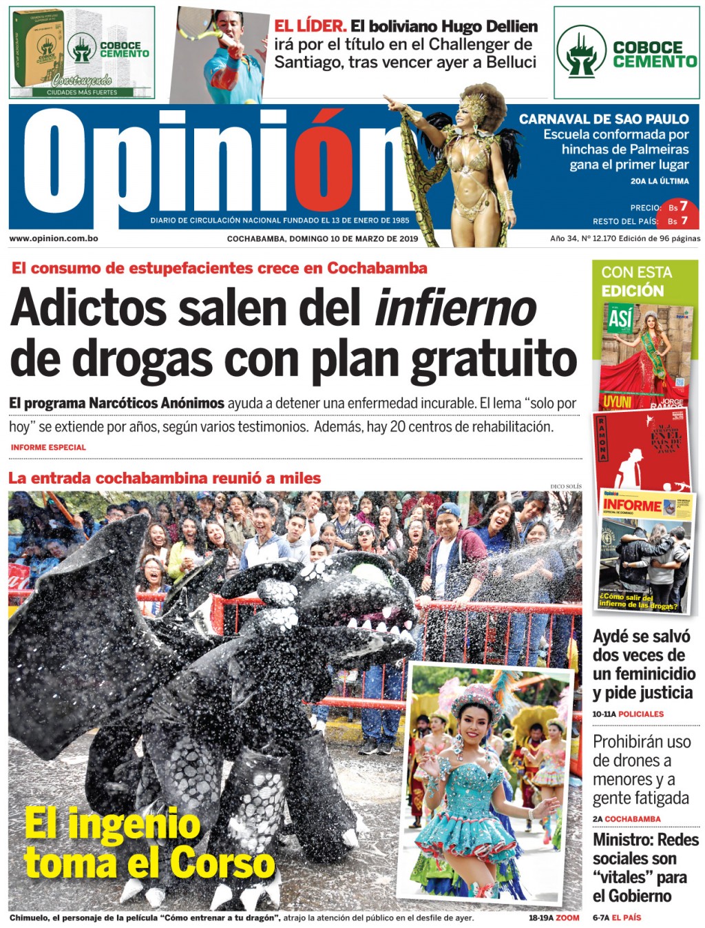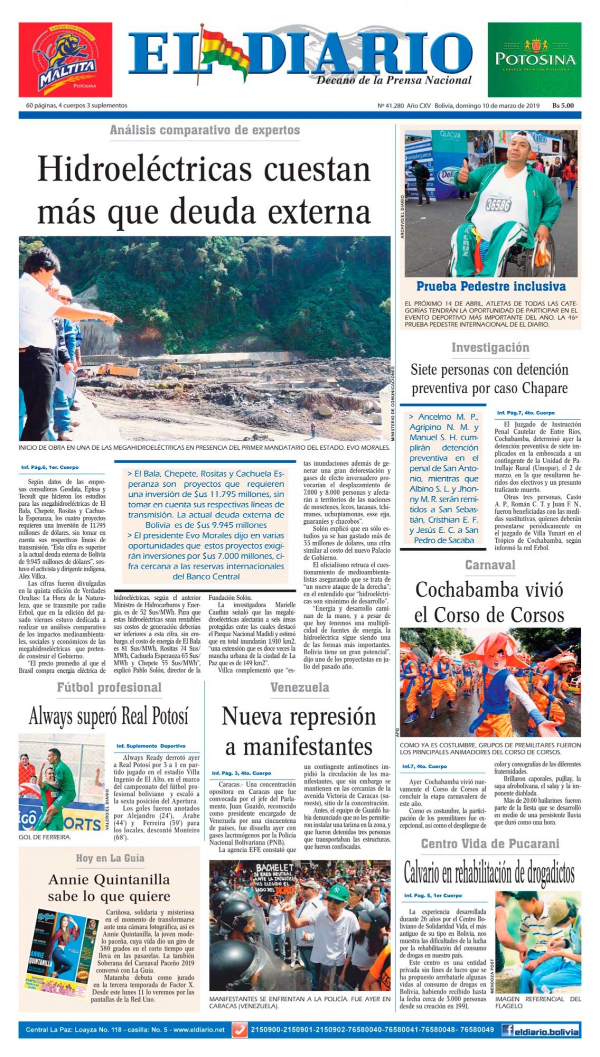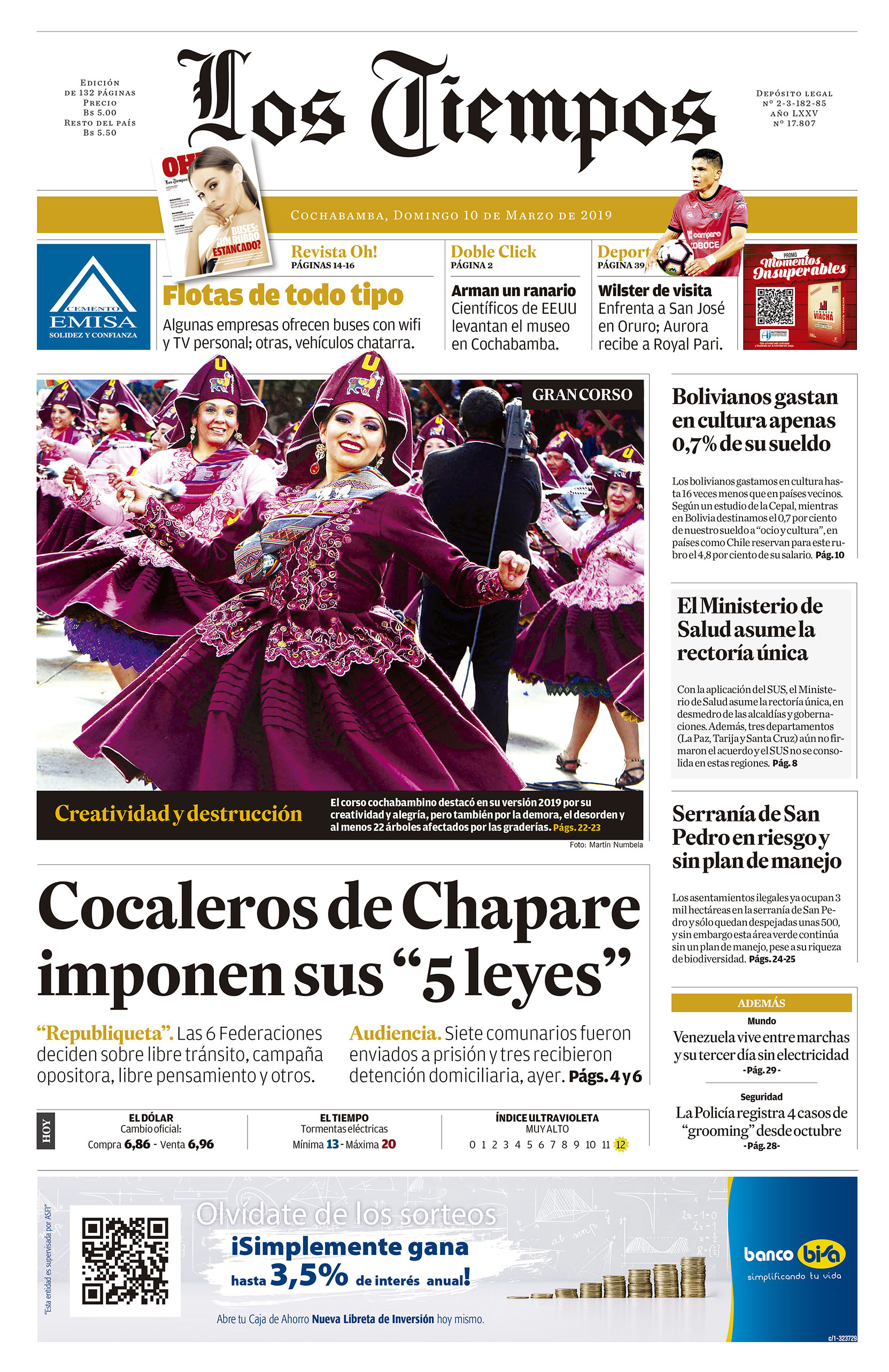 Portadas de periódicos de Bolivia del domingo 10 de marzo de 2019