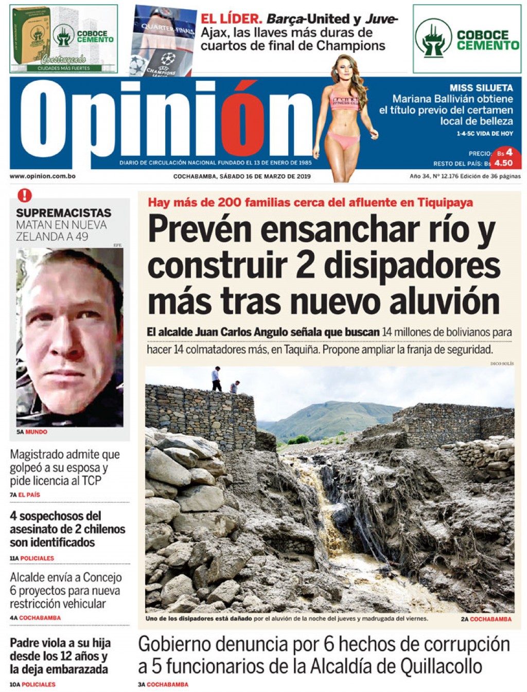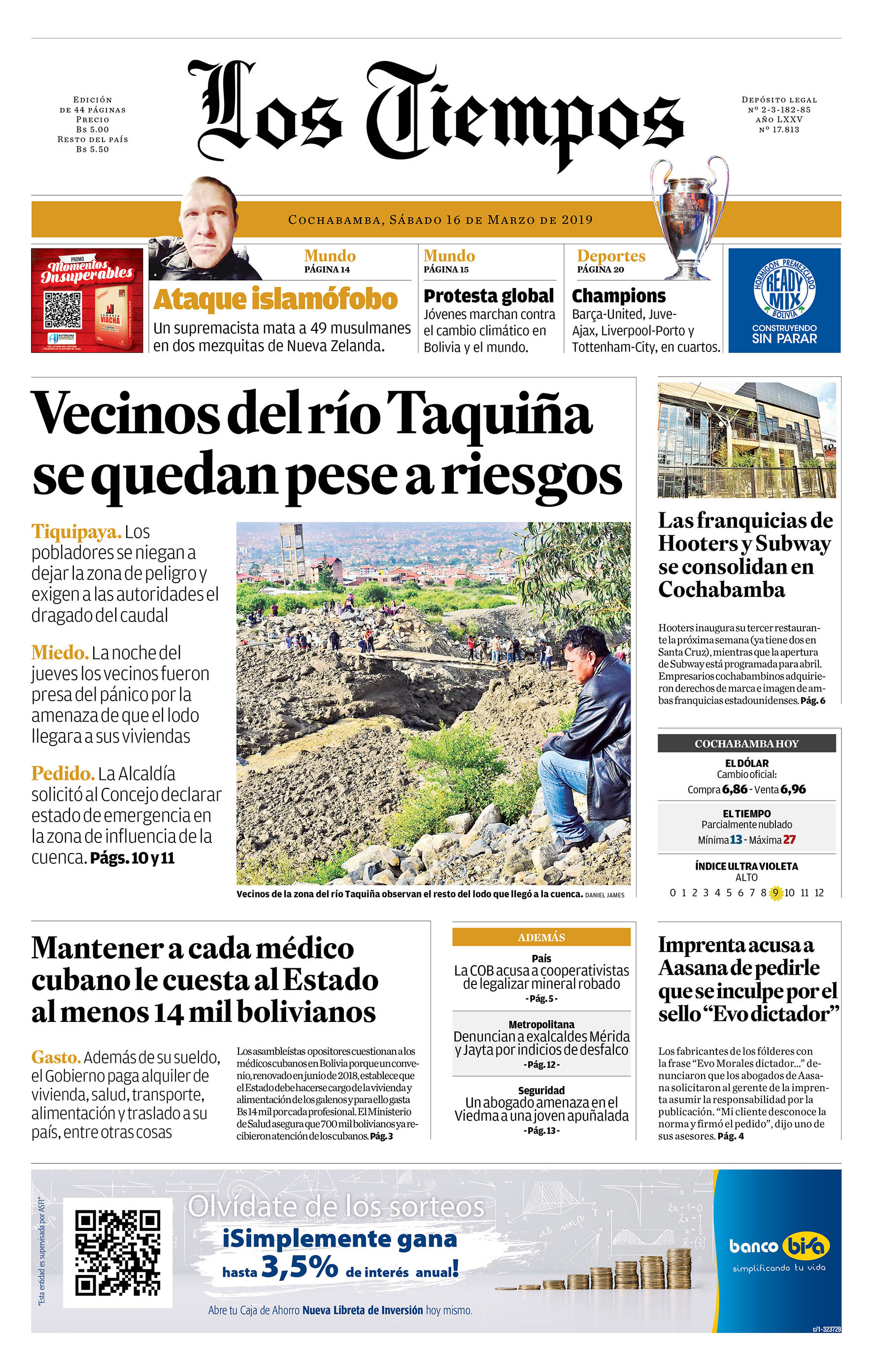 Portadas de periódicos de Bolivia del sábado 16 de marzo de 2019