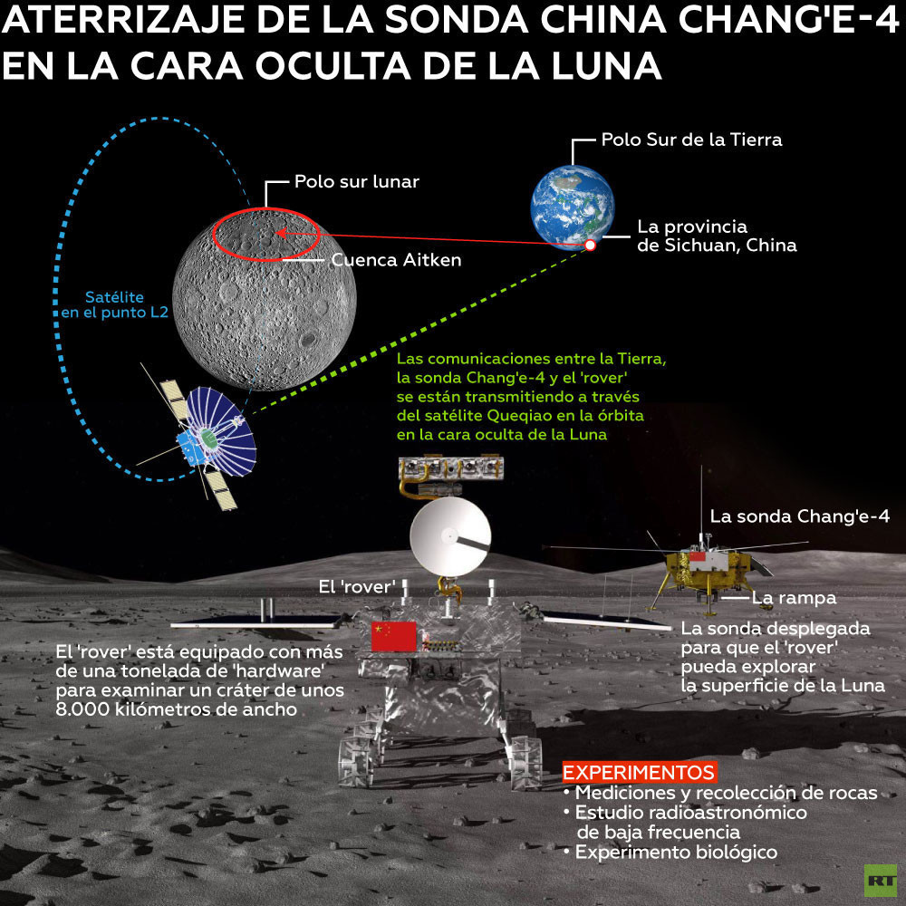 - La nave espacial —que lleva el nombre de la diosa lunar en la mitología china— alunizó con éxito en la parte oculta de la Luna el pasado 3 de enero. De esta manera, China se ha convertido en el primer país en la historia en lograr un aterrizaje exitoso de una sonda en esa zona.