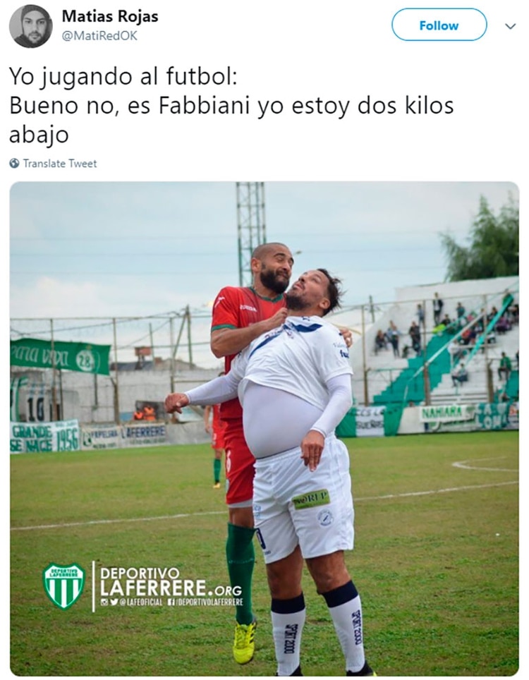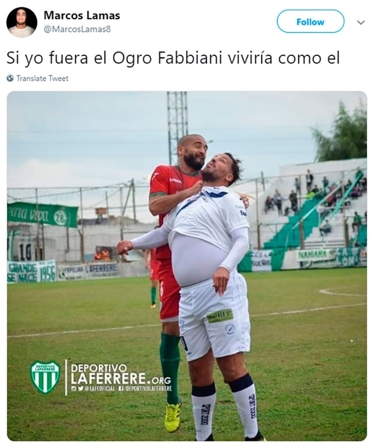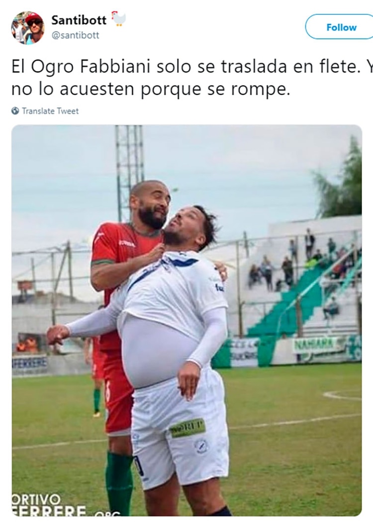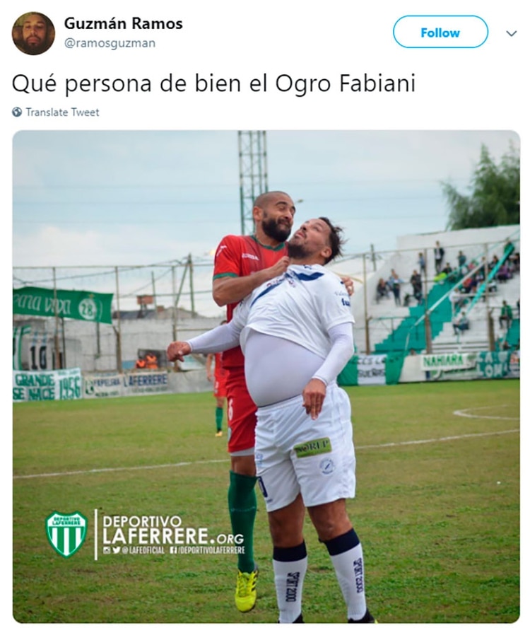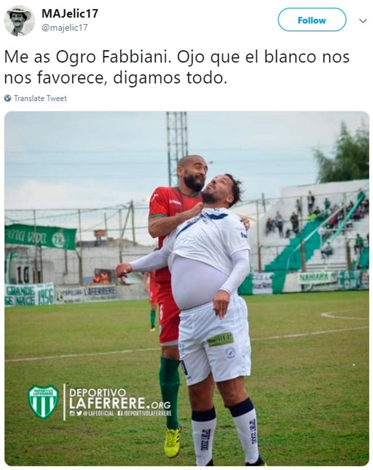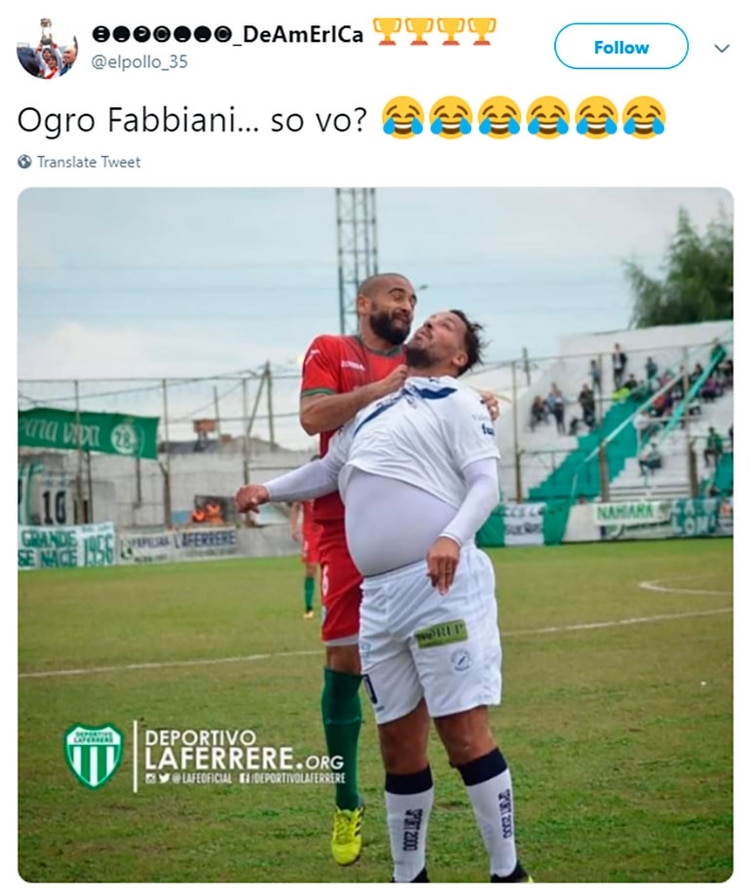 Cristian Fabbiani volvió a estar en el centro de la escena pública por una foto que se volvió viral en las redes sociales. En el encuentro protagonizado entre Deportivo Merlo y Laferrere por el Reducido de la Primera C en busca del ascenso, el Ogro quedó expuesto por una imagen que publicó su equipo en la cuenta oficial de Twitter.