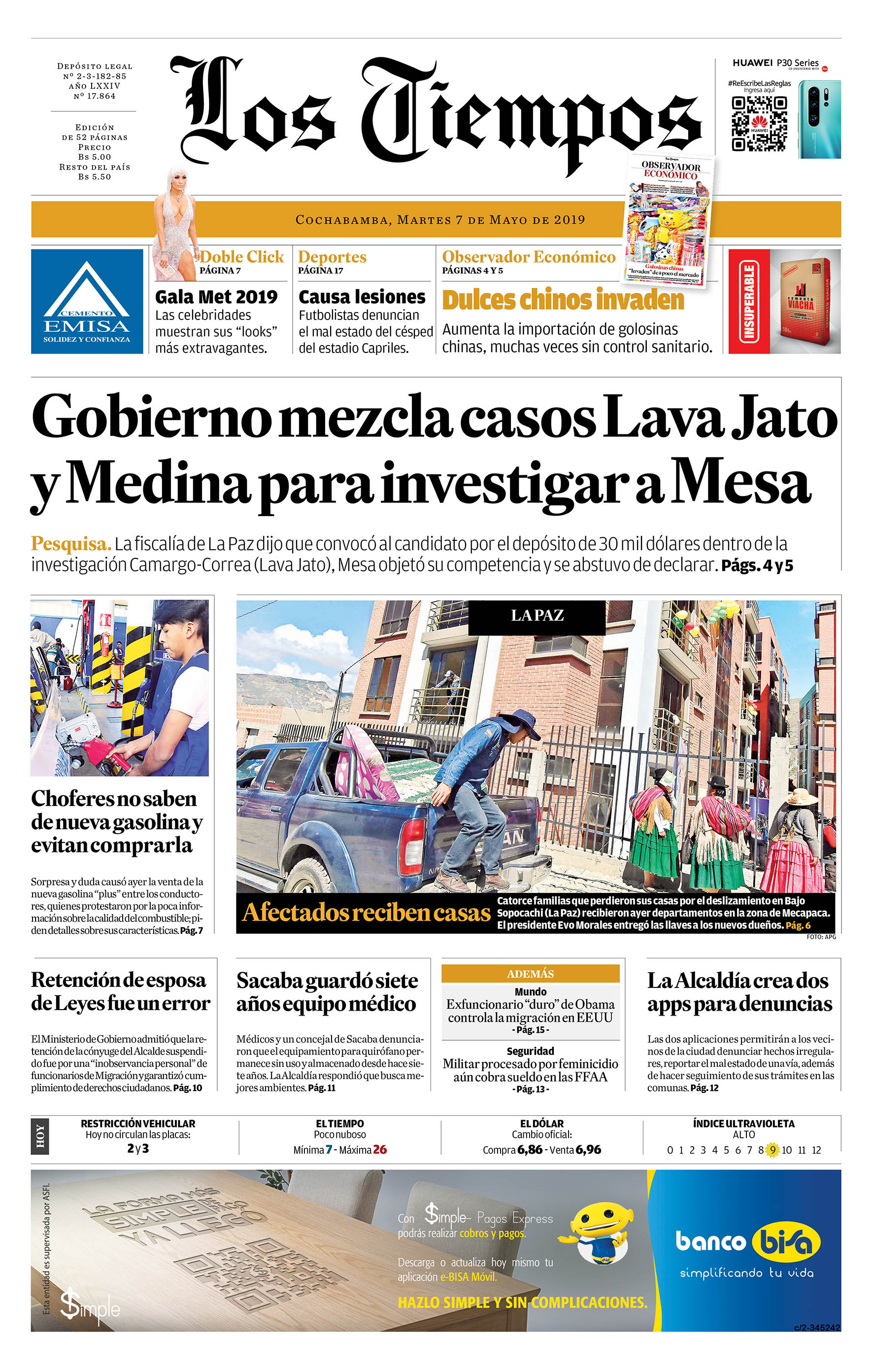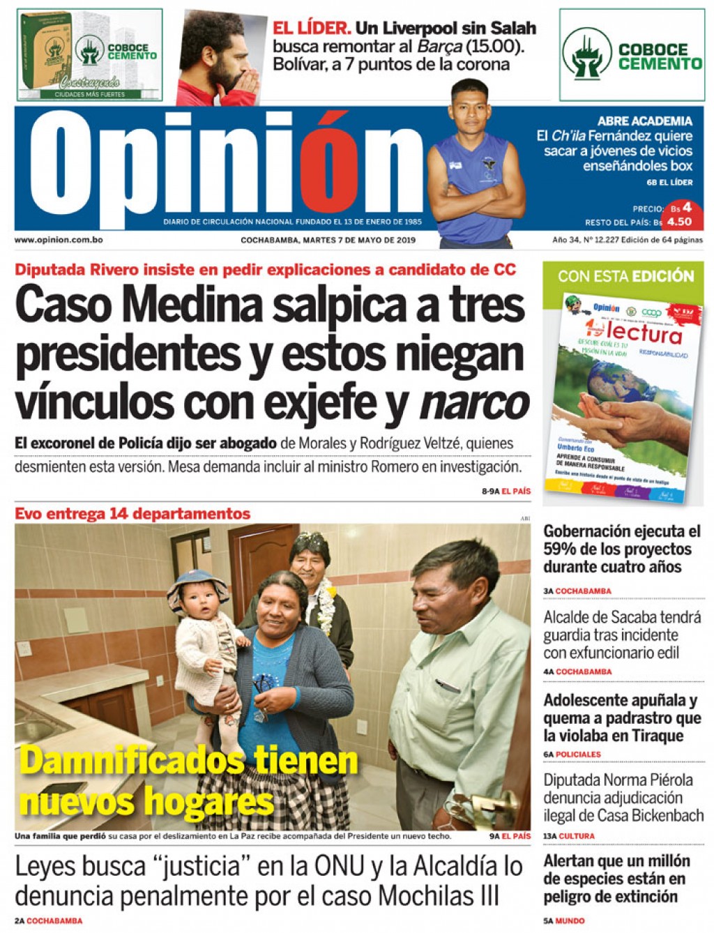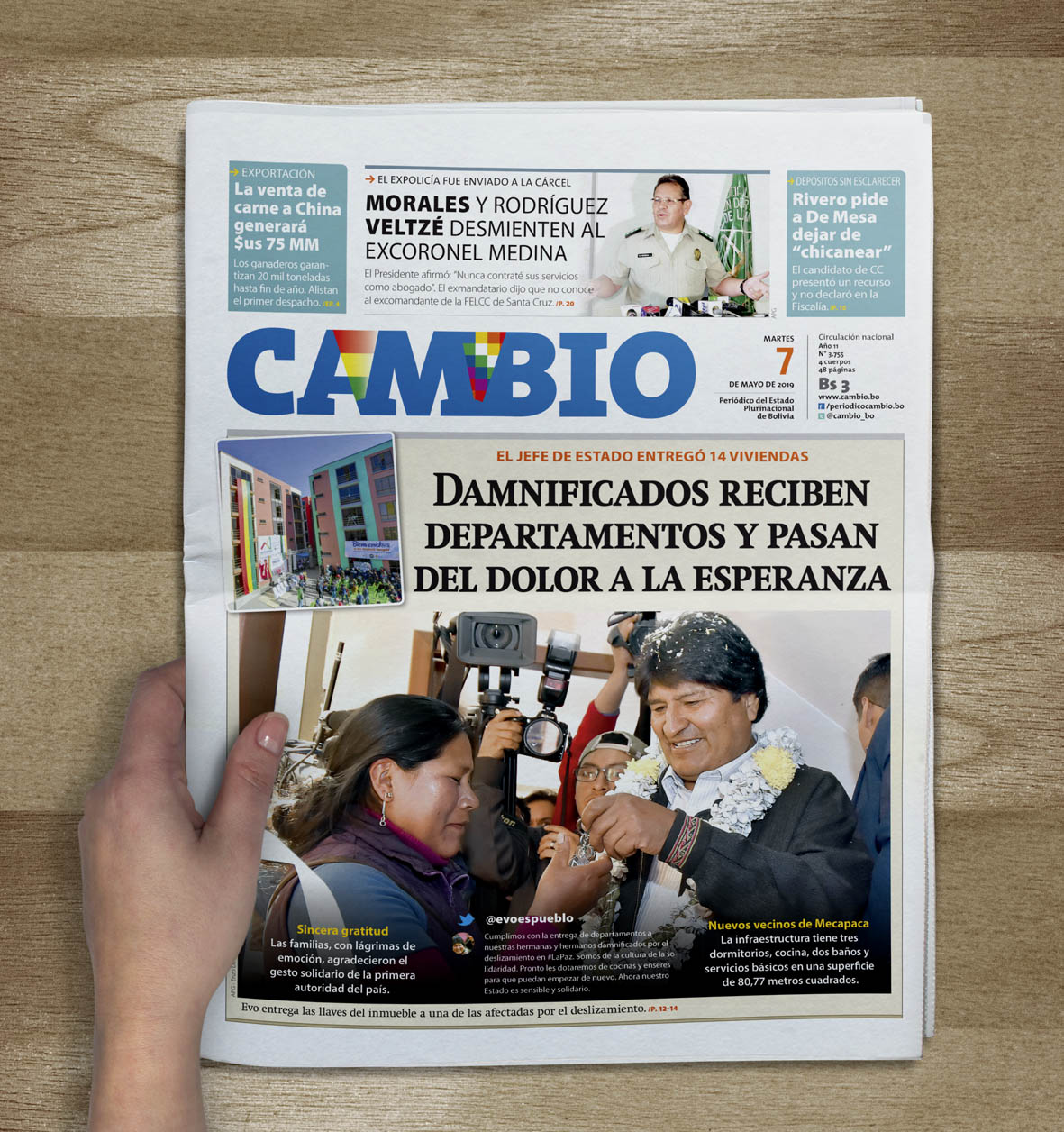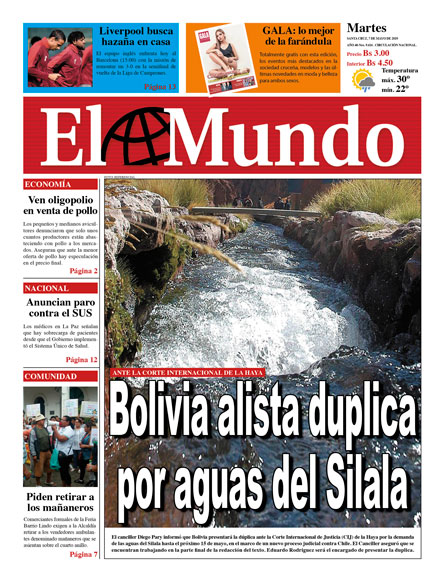 Portadas de periódicos de Bolivia del martes 7 de mayo de 2019Categorías MonitoreoEtiquetas , Portadas de periódicos 07/05/2019 Los Tiempos – El Día – La Razón – Cambio – Página Siete – Opinión