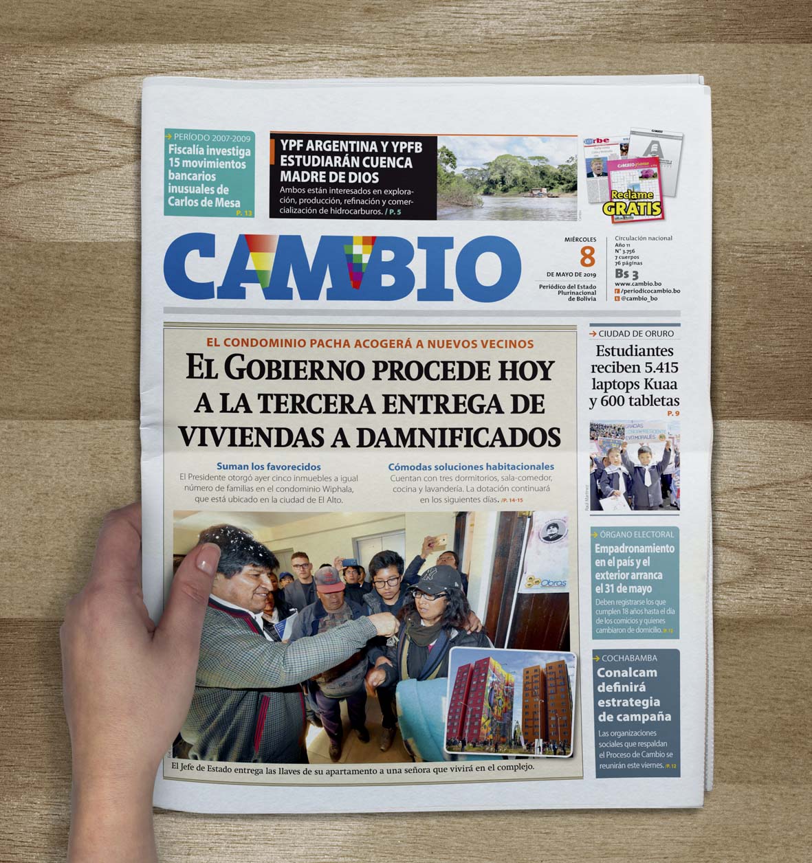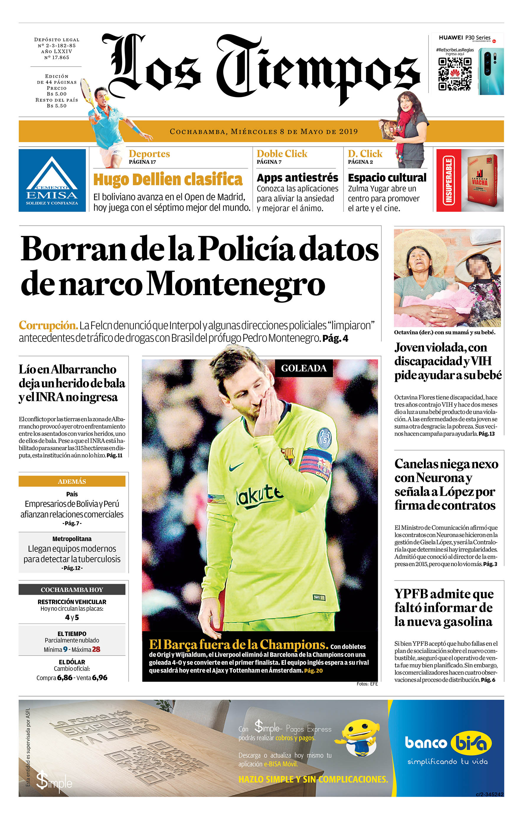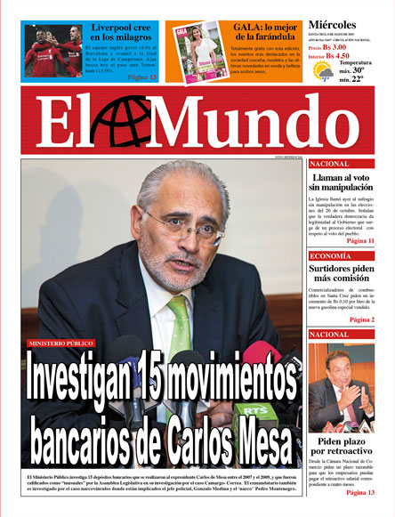 Portadas de periódicos de Bolivia del miércoles 8 de mayo de 2019Categorías MonitoreoEtiquetas , Portadas de periódicos 08/05/2019 El Deber – Los Tiempos – El Día – La Razón – Cambio – El Diario – Página Siete – Opinión
