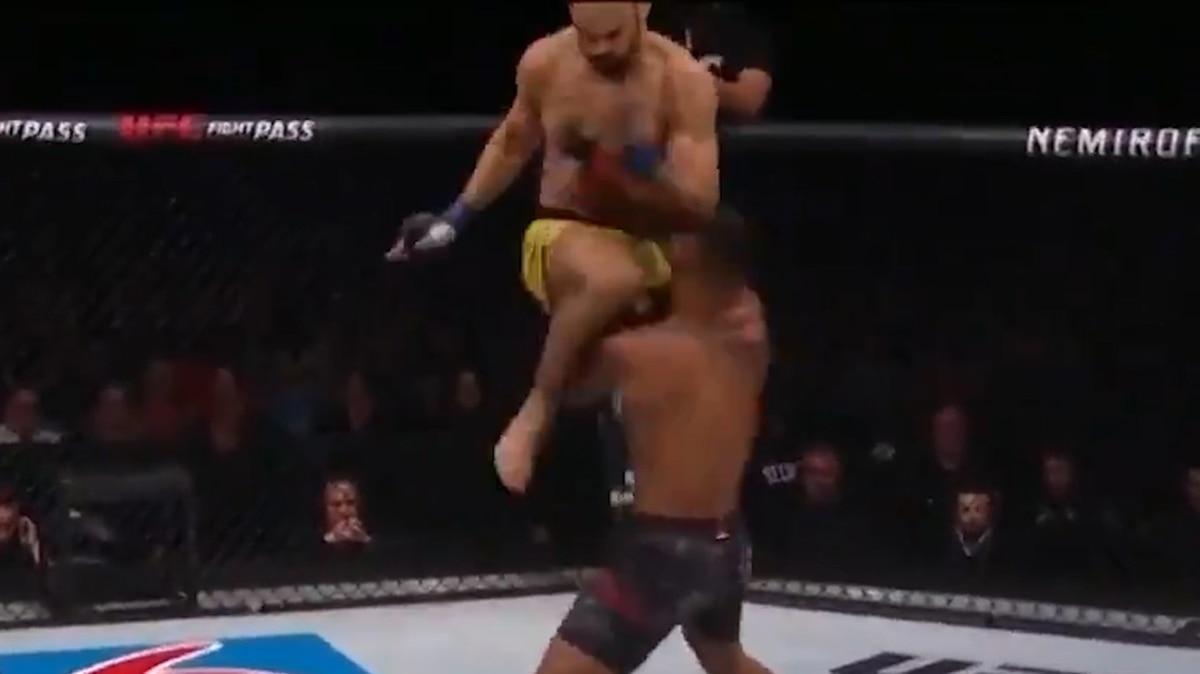 Pereira ganó gracias a un rodillazo al mentón seguido de un golpe al rostro que dejó a Roberts tendido y sin reacción. Este tipo de salto es habitual en el debutante que a lo largo de su carrera ha implementado movimientos dignos de la WWE que confunden a sus contrincantes.