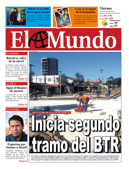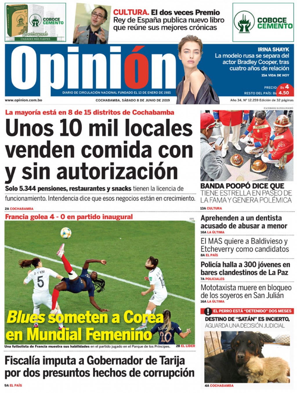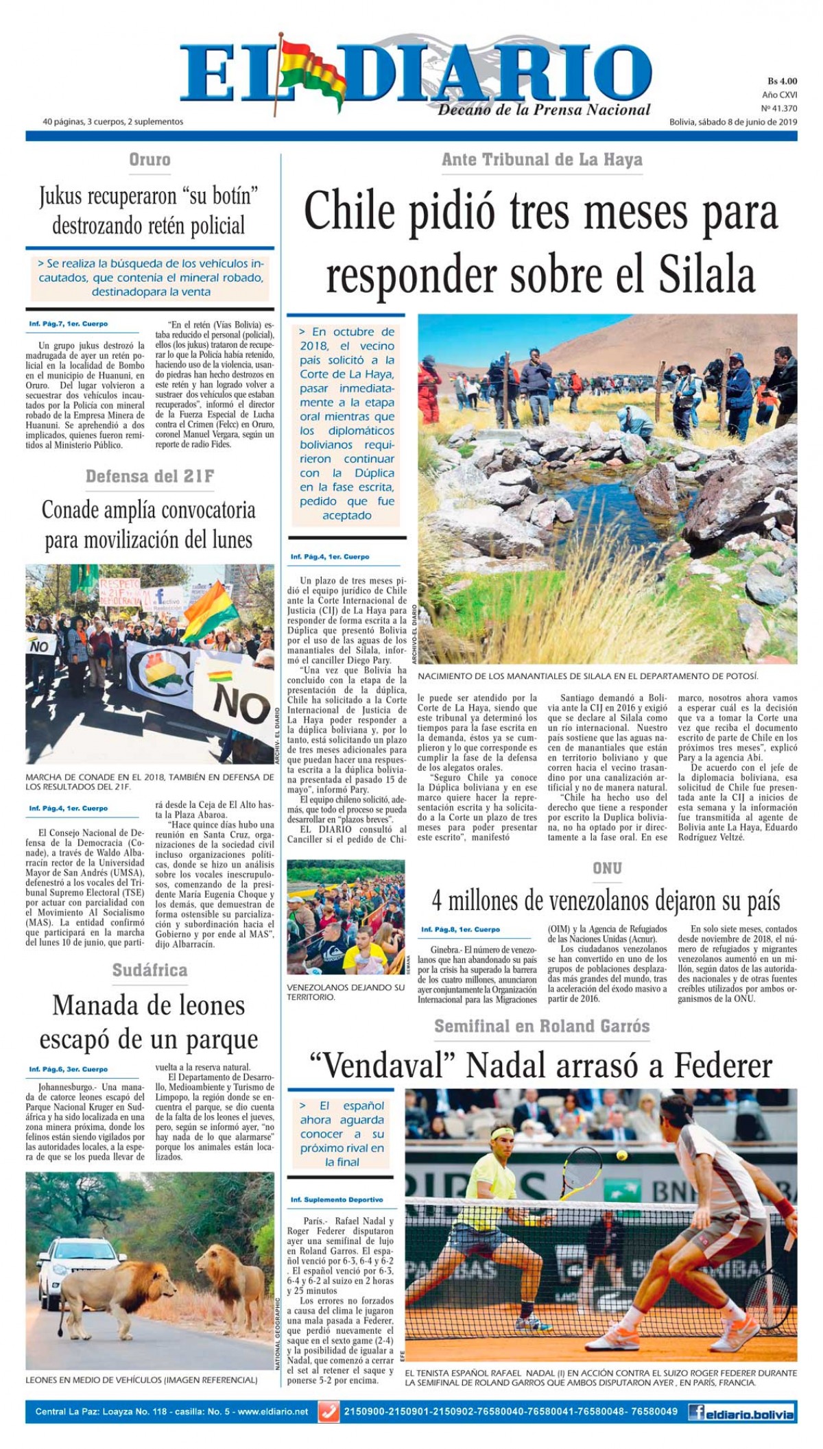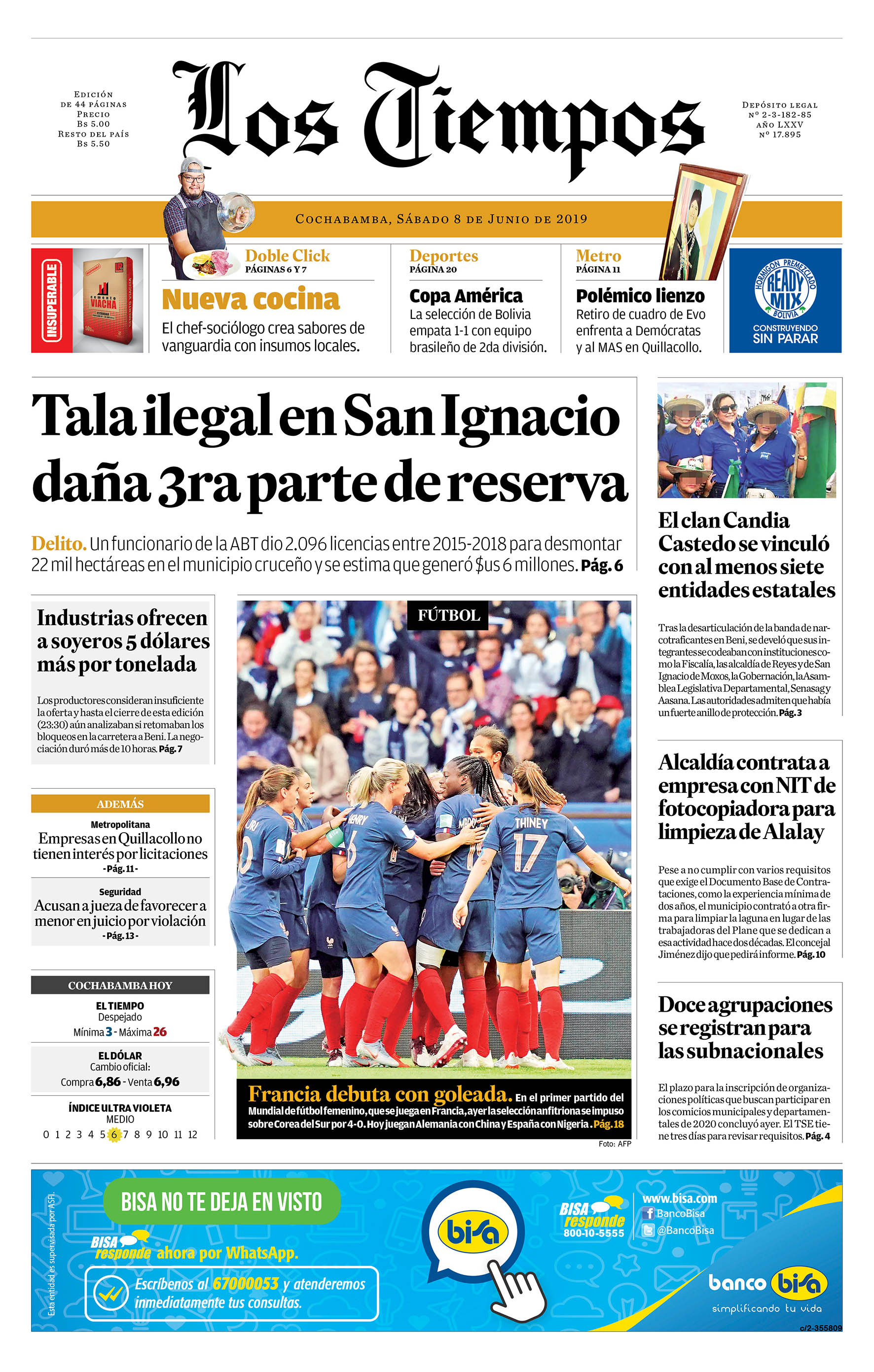 Portadas de periódicos de Bolivia del sábado 8 de junio de 2019Categorías MonitoreoEtiquetas , Portadas de periódicos 08/06/2019 El Deber – Los Tiempos – El Día – La Razón – Cambio – El Diario – Página Siete – Opinión
