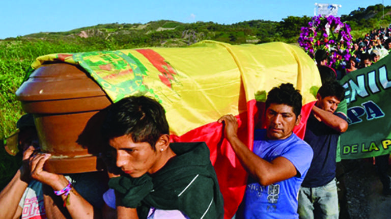 7 El 24 de agosto de 2018, tras en un enfrentamiento entre cocaleros y policías, el teniente Daynor Sandóval Ortiz fue emboscado y baleado, murió horas después. Tres cocaleros y siete policías son heridos.Un niño aparece muerto en Yungas