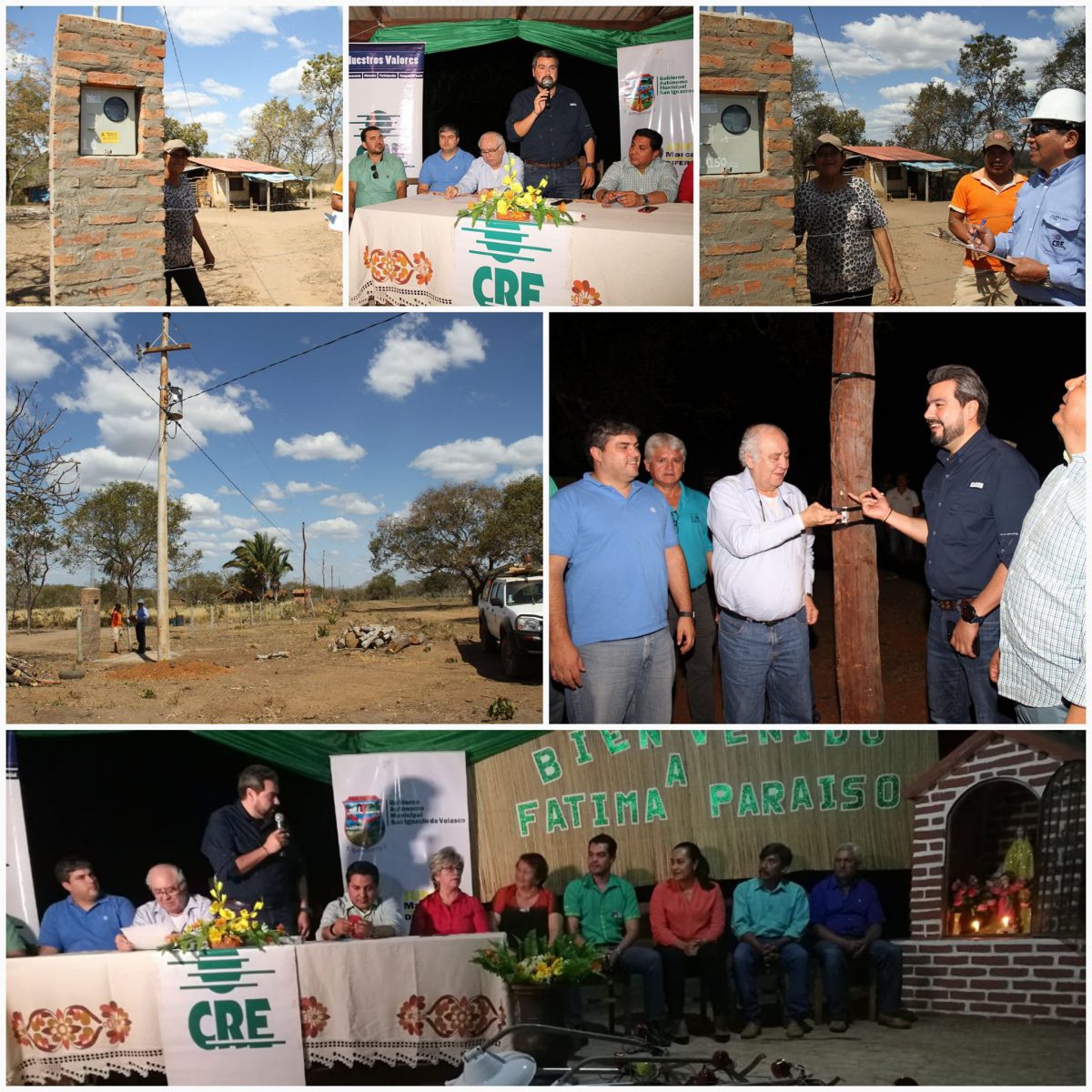 Fátima Paraíso ya tiene luz, En alianza con la subgobernación, el municipio de San Ignacio de Velasco y #CRE, se realizó el tendido de 26 kilómetros hasta la comunidad de Fátima Paraíso, que después de 56 años de existencia ahora cuenta con el servicio eléctrico para beneplácito de las 100 familias de la zona.