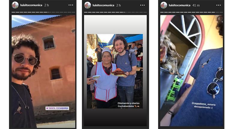 En sus Instagram Stories, Luisito compartió videos visitando las provincias de Tarata y Cliza, donde probó la tradicional chicha, chicharrón, chorizo y pichón que le causó gran sorpresa.