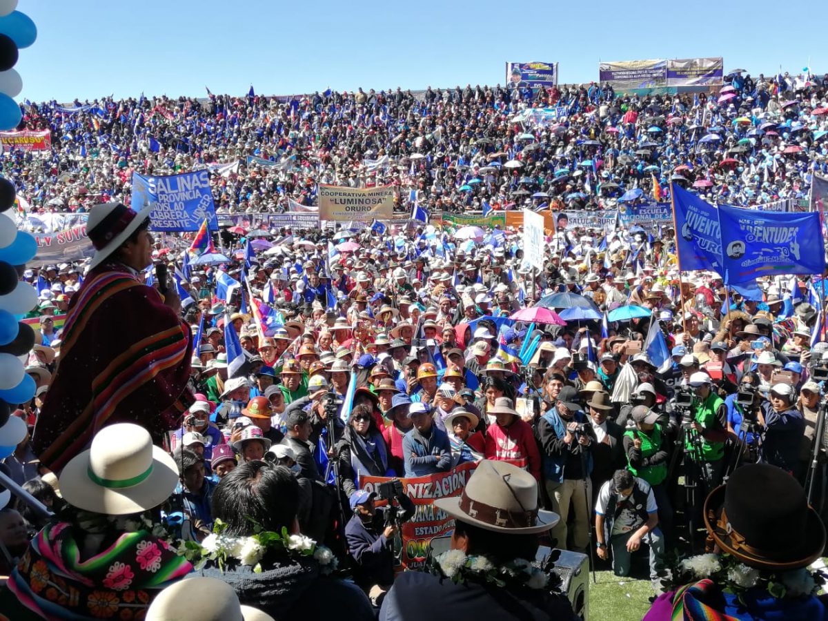 27 de julio (Urgentebo).- En la proclamación de militantes en Orinoca (Oruro ), el presidente Evo Morales aseveró que los programas de gobierno de los partidos opositores se basa en que el Movimiento Al Socialismo (MAS) no obtenga dos tercios en la Asamblea Legislativa en las elecciones generales de octubre.»Qué dijeron cuando ya supieron los resultados de las primarias, el Gobierno va a perder. Después qué dijeron, creo que va a ganar, pero vamos a llevar a la segunda vuelta, ahora qué dijeron últimamente va a ganar, pero por lo menos el MAS -IPSP, el Gobierno, que no tenga dos tercios, ese es su programa de la derecha, está en los periódicos», afirmó el mandatario.Pidió a los movimientos sociales que aseguren con su voto la elección del cien por ciento de asambleístas del departamento de Oruro, porque en su plancha existe gente joven, mineros y empresarios, entre otros.»Quiero decirles hermanas y hermanos yo también decidí, decidimos con Álvaro (García Linera) cinco años más queremos dar como hicimos hasta ahora y mi departamento Oruro quiero que me despidan con cien por ciento de asambleístas», señaló.Está seguro que no perderá la mayoría de la Asamblea Legislativa, porque existe el apoyo de diversos sectores de la población que garantizarán su gestión 2020-2025.Remarcó que los programas de gobierno anuncian que eliminarán los beneficios que ahora tienen varios sectores necesitados de la población, además alertó que, por ejemplo, plantean que las universidades indígenas se conviertan en institutos tecnológicos.A su juicio, frente a esas propuestas de los partidos de derecha de retornar al pasado, es necesario el apoyo de todos los bolivianos para seguir con ese proceso hacia adelante, «porque ahora Bolivia no es un pequeño país, es un país grande».Fuente: https://www.urgentebo.com