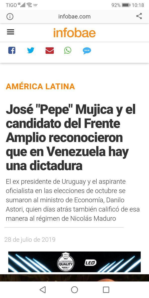 Otro giro electoral copernicano en Uruguay. Mujica defendió durante años a tirano venezolano, hace solo tres meses justificaba represión y regañaba a «protestantes»; recién ahora, por necesidad electoral, le llama dictadura. Maduro está podrido y sus amigotes lo abandonan. https://t.co/My8kvneVvW