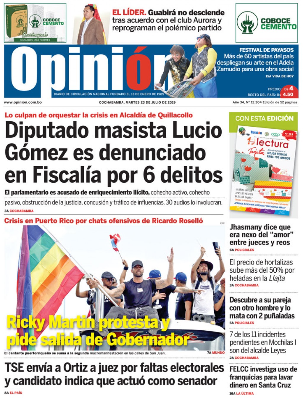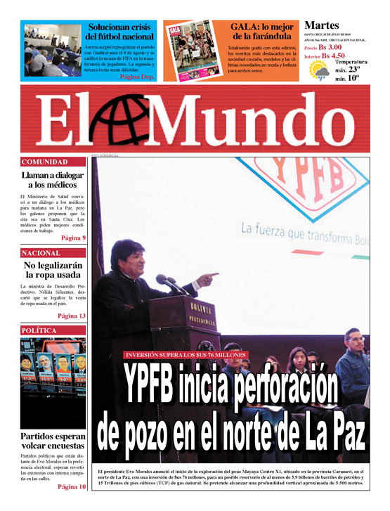 Portada Edición ImpresaEl Deber – Los Tiempos – El Día – La Razón – Cambio – El Diario – Opinión- La Estrella del Oriente