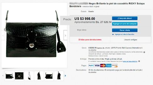Por ejemplo, en eBay una cartera para mujer elaborada con la piel del caimán negro puede llegar a costar 4.000 dólares. Cinturones, chamarras, portafolios, calzados y botas, todos cotizados en dólares, se suman a la oferta de productos creados con la piel de este reptil.