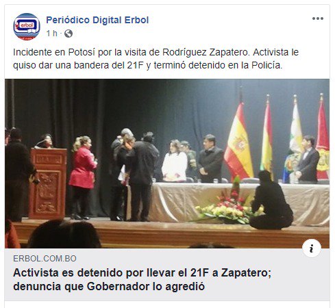 ¡Zapatero adula a Evo pero es sordo ante el 21F!Rechaza bandera del 21F pero encubre al gobMAS más corrupto, negador del art 168 CPE y ligado a intereses del narcotráfico.¡El MAS está mal y necesita adulación extranjera!@pagina_siete@LosTiemposBol@diarioeldeber@Diario_ElDia https://t.co/kbNMiiD7bf