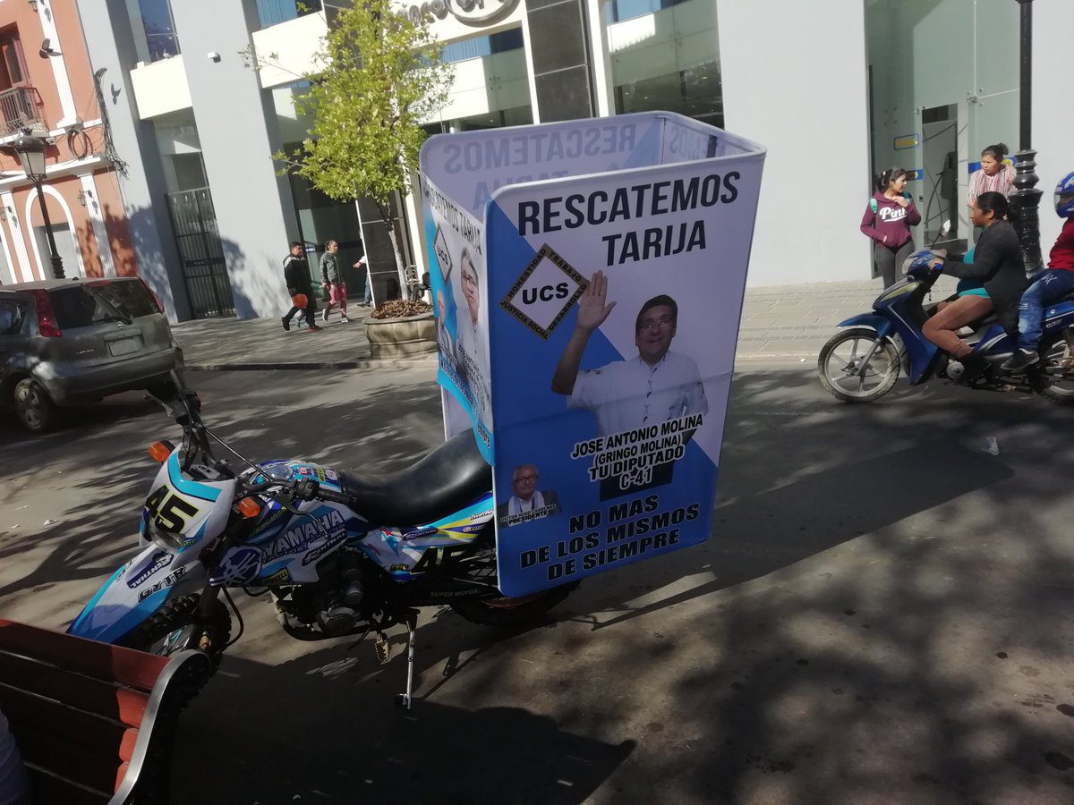 En Tarija, la moto móvil del Gringo Molina, candidato de UCS. Hemos acompañado los recorridos por las calles y mercados de la ciudad del Moto Méndez.¡Gracias Tarija, por el afecto y cariño a nuestras candidaturas y propuestas!@pagina_siete@LosTiemposBol@diarioeldeber@ANF https://t.co/oZrTS7lG5c
