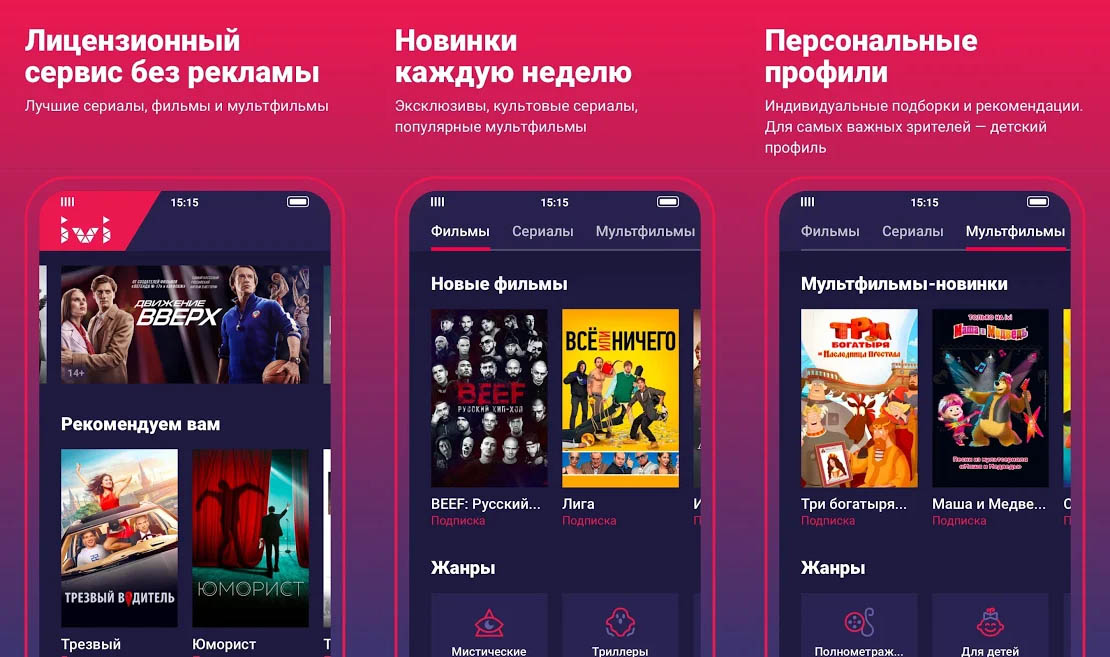 La sala de cine legal más grande de Rusia y la CEI. Dispone de un gran catálogo de películas, series y dibujos animados, de gran calidad, incluyendo éxitos nacionales e internacionales. Constantemente ivi se encuentra añadiendo nuevo contenido. Las películas pueden descargarse para mirarlas sin conexión a Internet. Actualmente esta aplicación cuenta con millones de usuarios. Su contenido se puede ver en cualquier dispositivo móvil, tableta, televisor inteligente.Link | Descargar