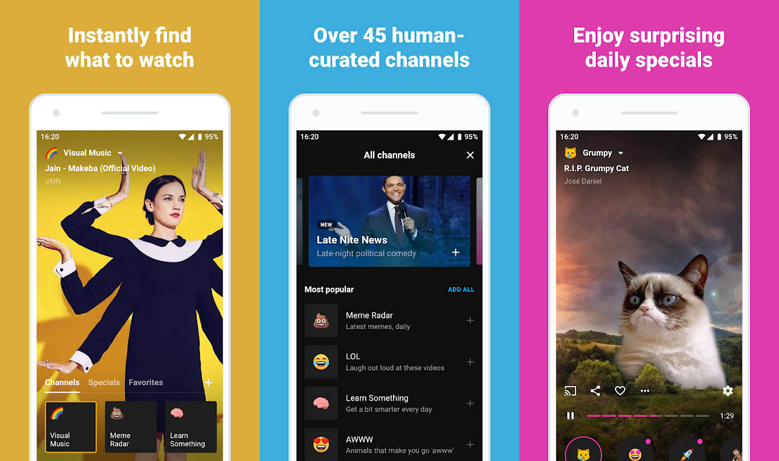 La tarea principal de Neverthink, es mostrarte el mejor contenido reciente en YouTube que jamás habrías imaginado. Funciona igual que la televisión y tiene especiales diarios para las tendencias. Dispone de más de 40 canales seleccionados por otros usuarios, que te mantendrán al día con las últimas noticias. A través de Chromecast puedes transmitir a tu TV.Link | Descargar