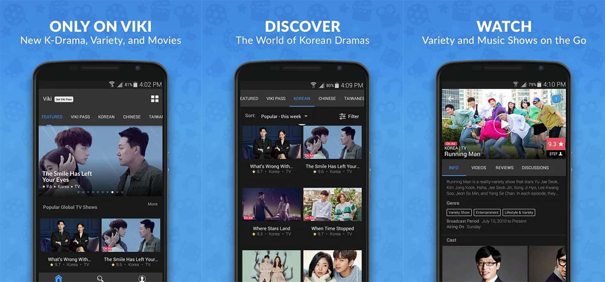 Si eres fanático del Kpop y del mundo Kdrama, Viki te va a encantar. Es un servicio integral para nuevos dramas coreanos y espectáculos musicales del Kpop. Dispone de una variedad de películas, programas de TV, videos de moda y estilo de vida asiático, con los mejores subtítulos, en diferentes idiomas. También te conecta con otros usuarios para intercambiar opiniones.Fuente: https://wwwhatsnew.com