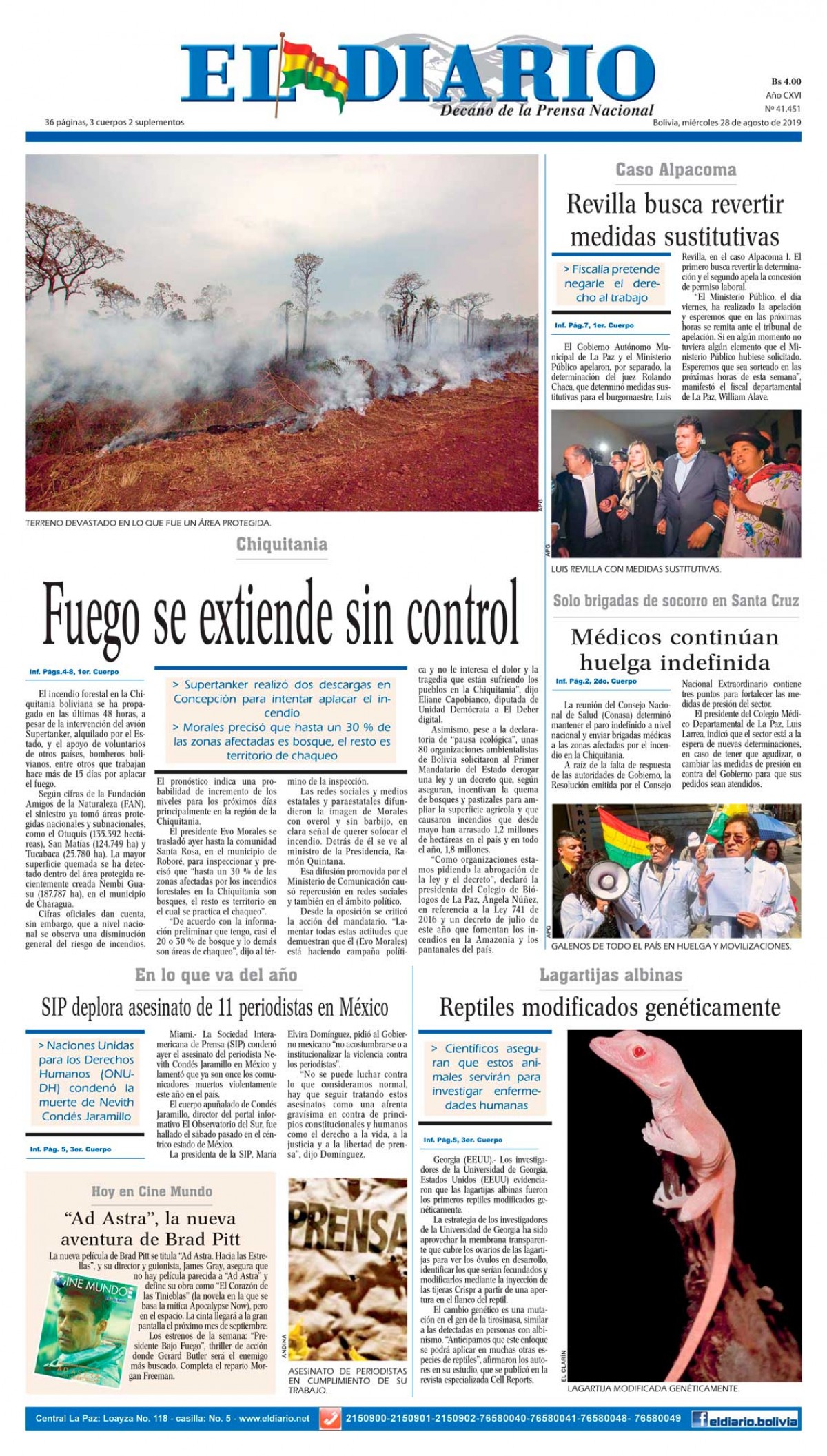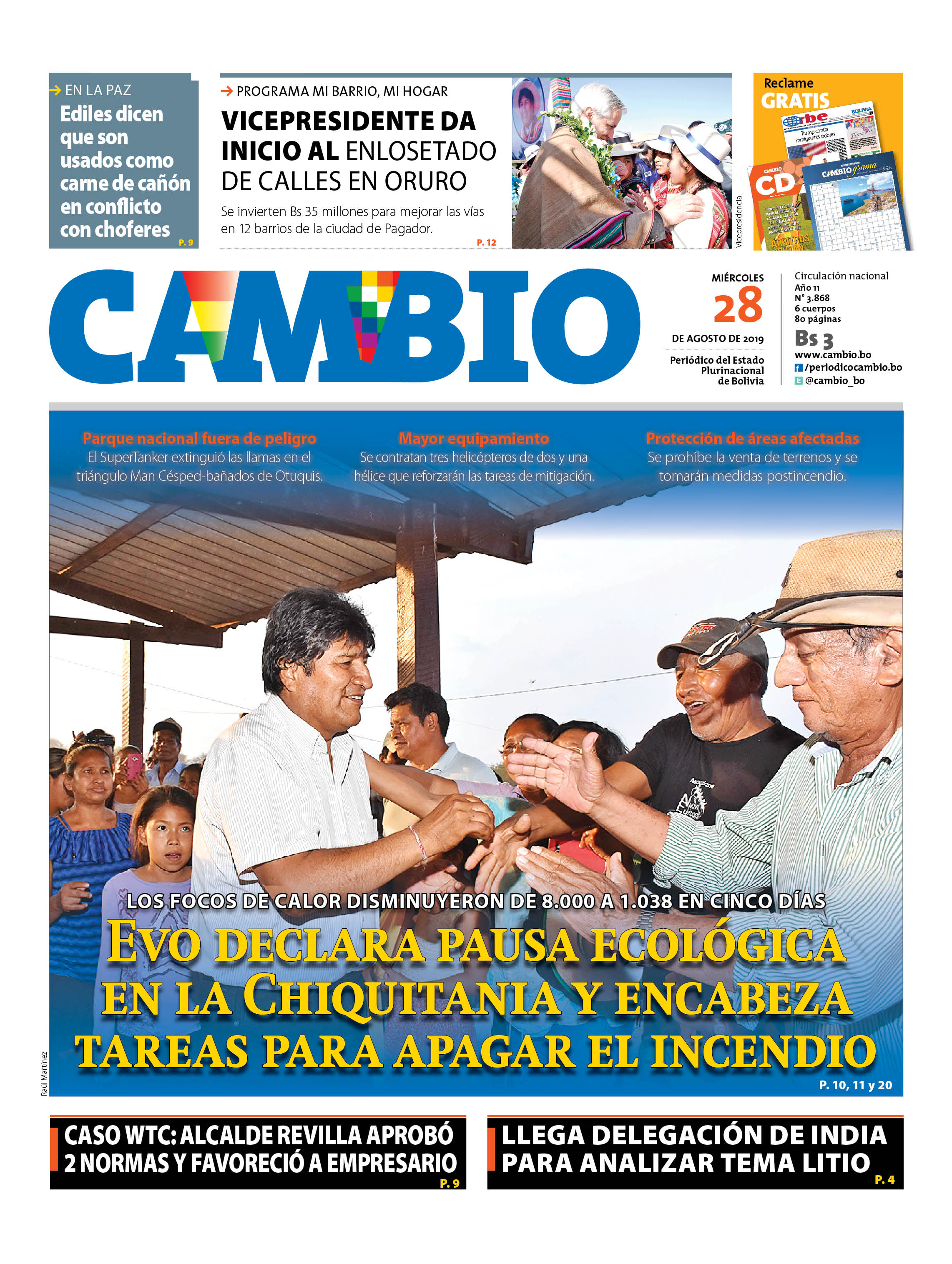 Portada Edición ImpresaEdición 28-08-2019El Deber – Los Tiempos – El Día – La Razón – Cambio – El Diario – Página Siete – La Estrella del Oriente