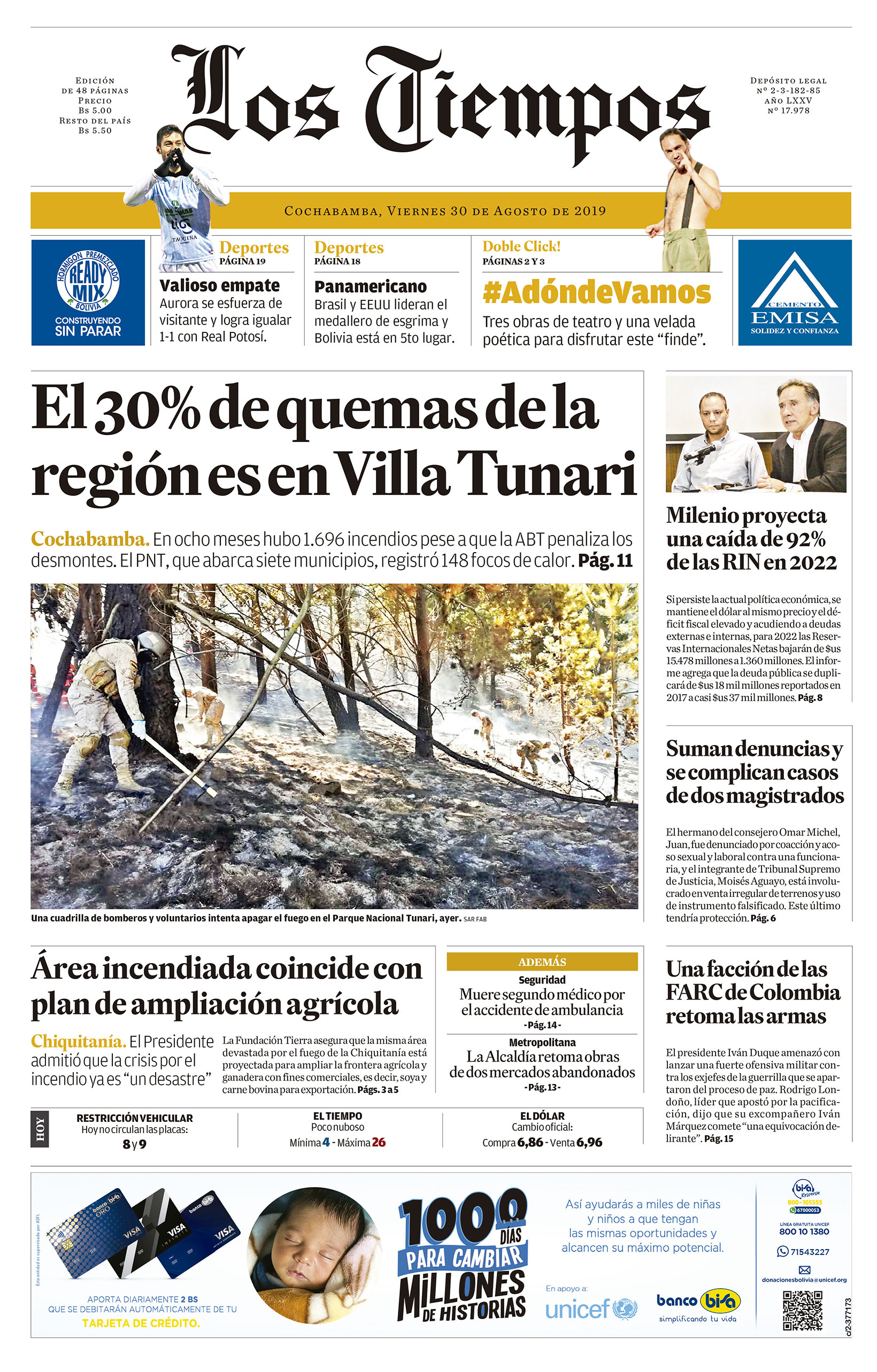 Edición 31-08-2019Portada Edición ImpresaEl Deber – Los Tiempos – El Día – La Razón – Cambio – El Diario – Página Siete – Opinión – La Estrella del Oriente