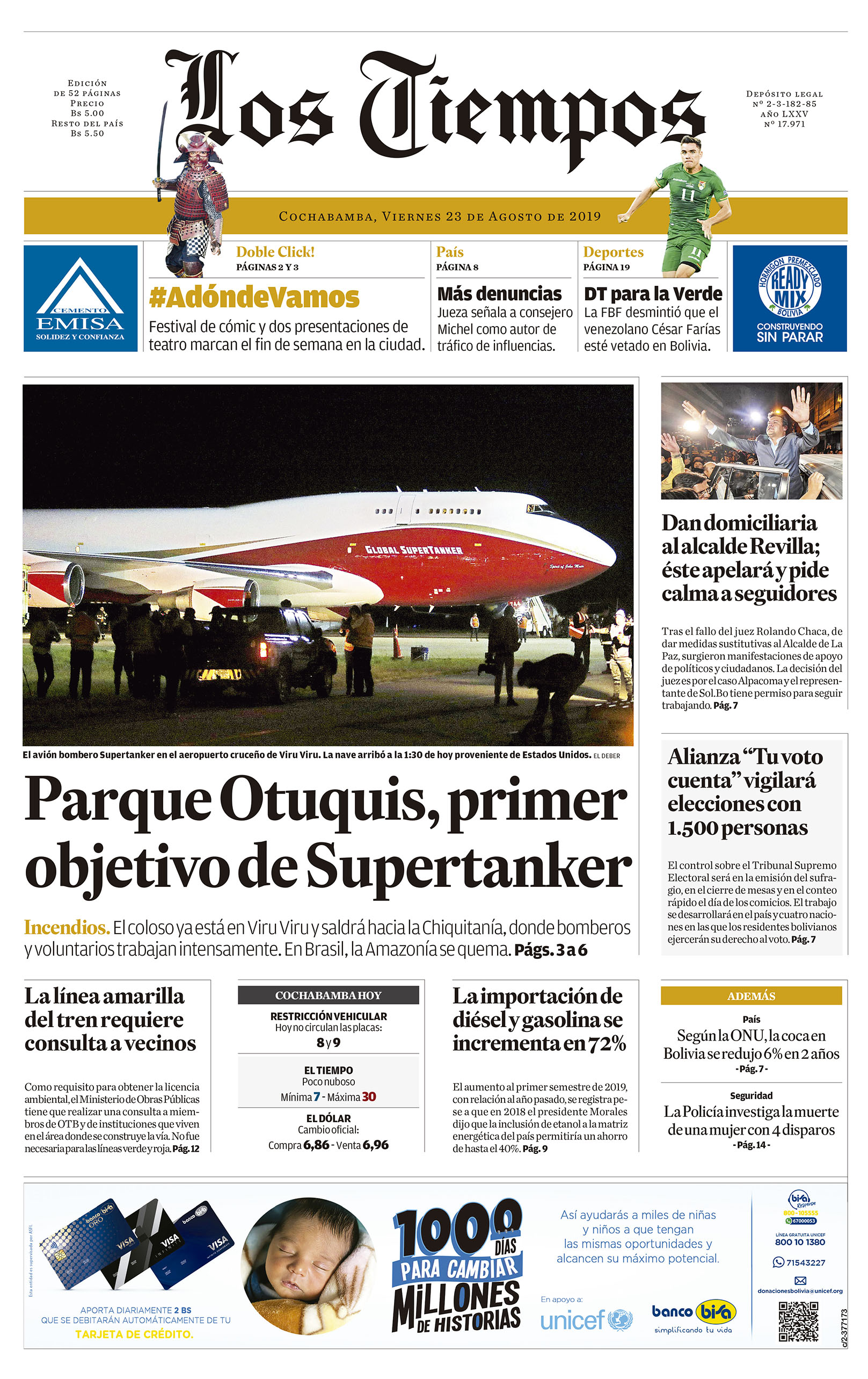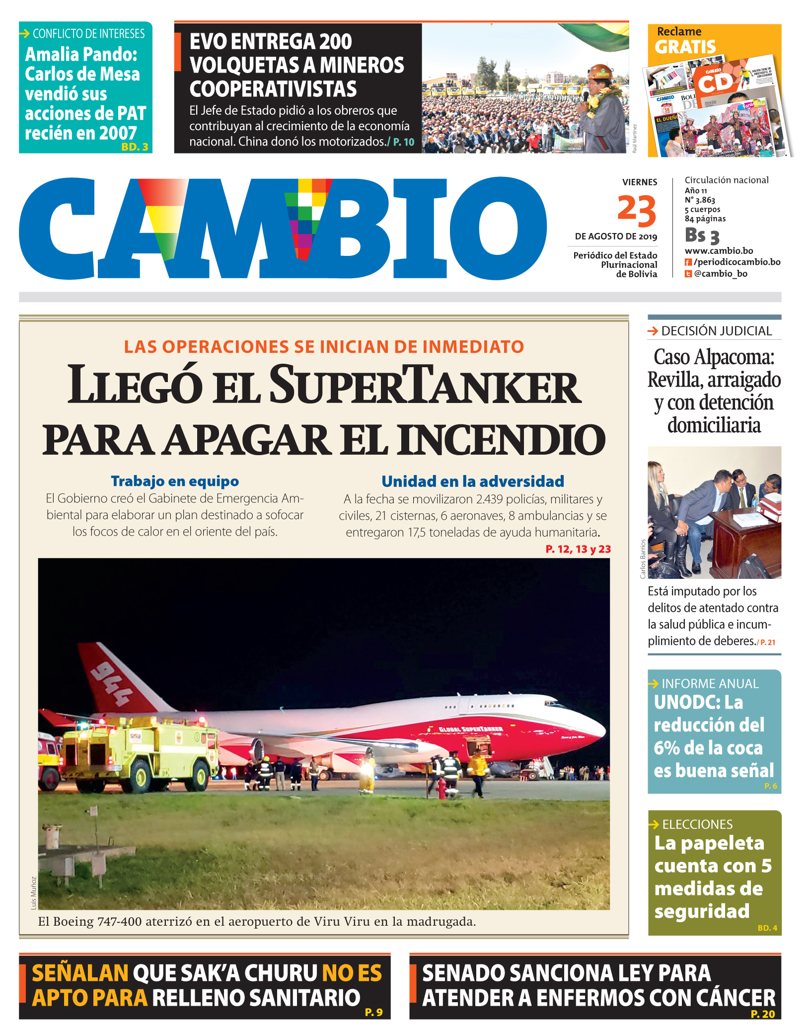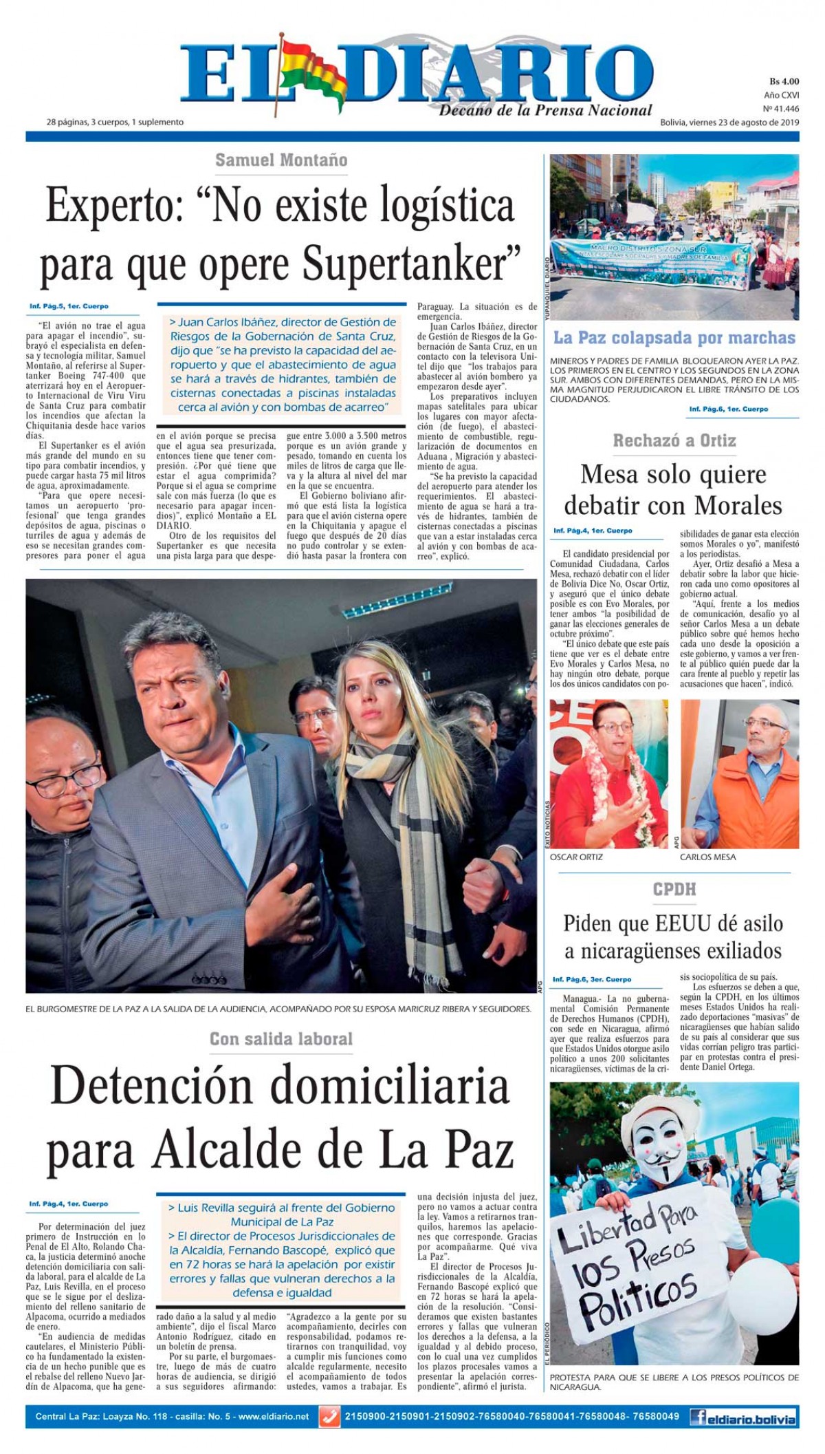 Edición 23-08-2019El Deber – Los Tiempos – El Día – La Razón – Cambio – El Diario – Página Siete – La estrella del Oriente