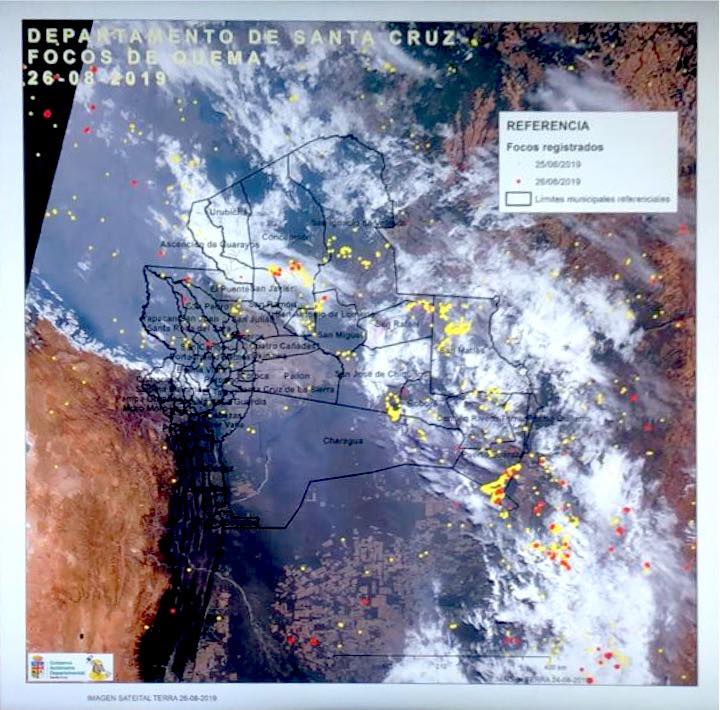 Servicio de Satélite es pagado por Gobernación para tener imágenes en tiempo real#CrisisChiquitania:Imágenes satelitales a horas 20:00 del día lunes 26 de agosto. Gracias a Enrique Bruno de la Gobernación de Santa Cruz por la información y que señaló en el Bunker que la población sepa que diariamente 2 satélites están siendo pagados en su servicio desde la Gobernación de Santa Cruz para mostrar lo que va sucediendo en la jornada. npetvFuente: Agustín Zambrana en El Bunker