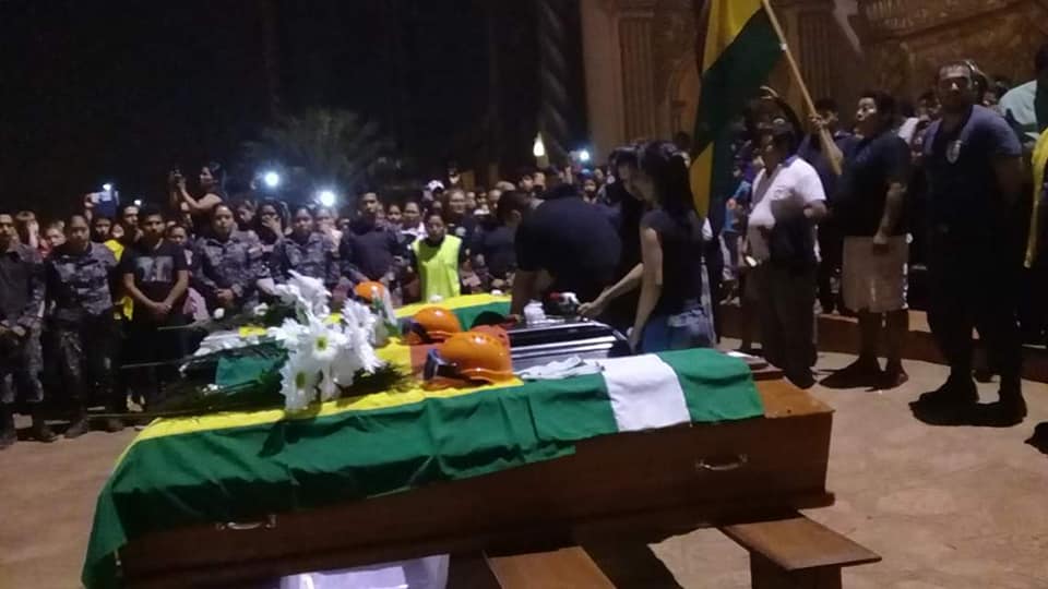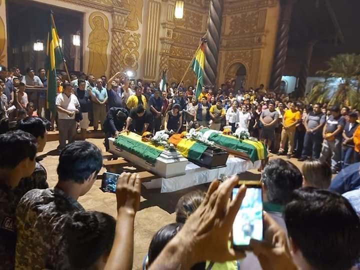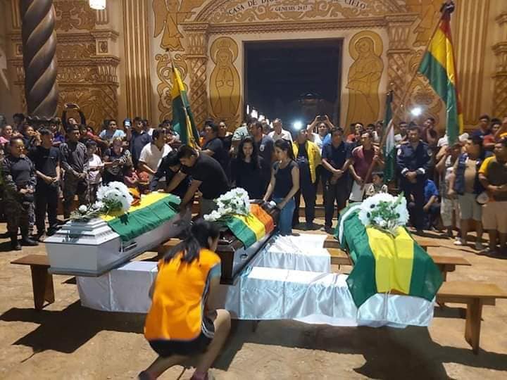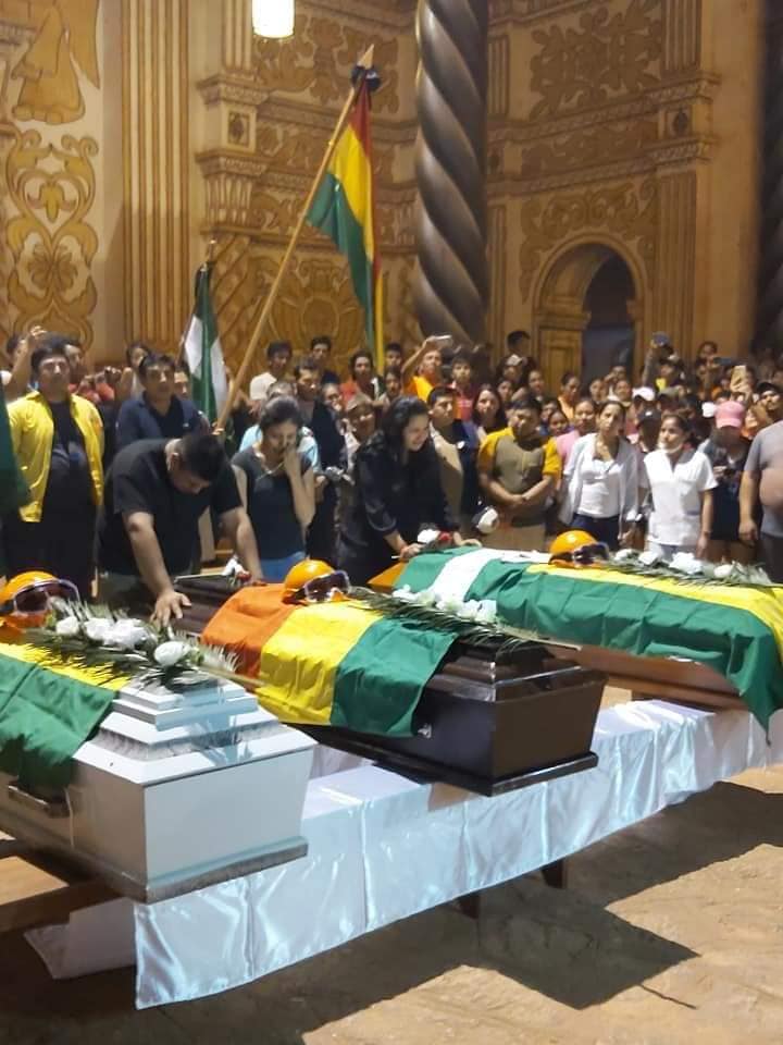 Santa Cruz.- La población improvisó un velatorio en el atrio de su iglesia, los cuerpos de los voluntarios que murieron ahogados en un atajado donde se bañaban agrava la situación de luto que se vive en la Chiquitania a causa del infernal incendio que avanza al influjo del viento.