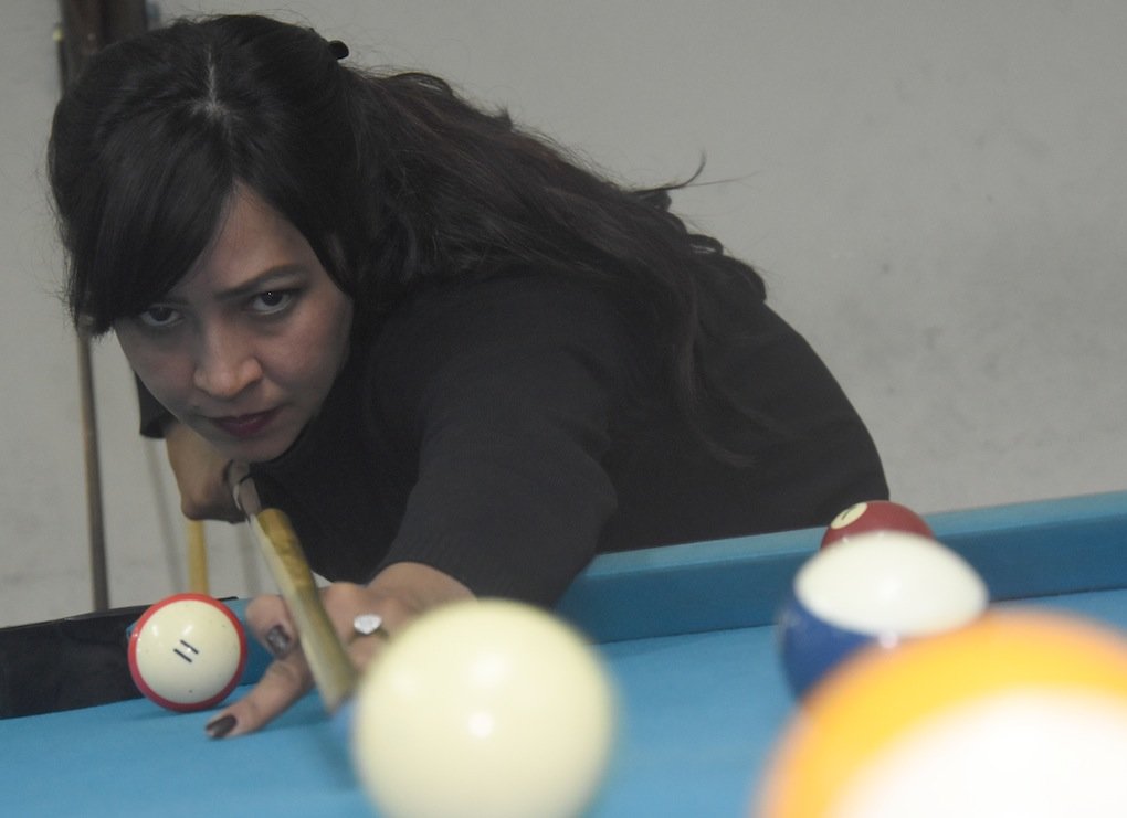Nataly Camacho, durante la visita de EL LÍDER a su club de billar, situado en la Costanera, frente al Olympic. Ayar Wari