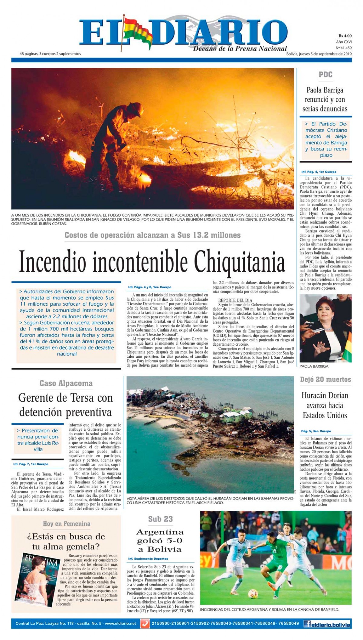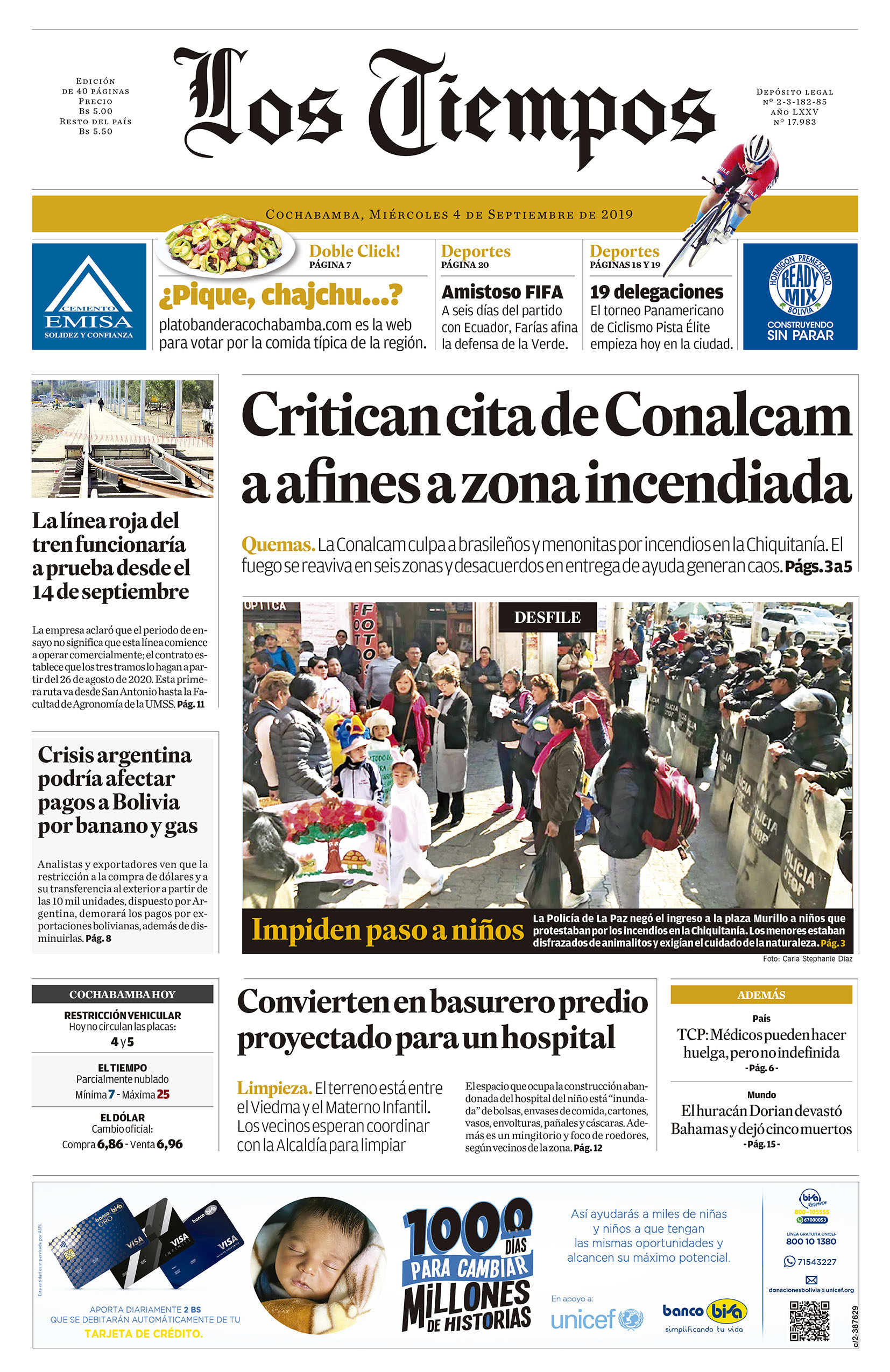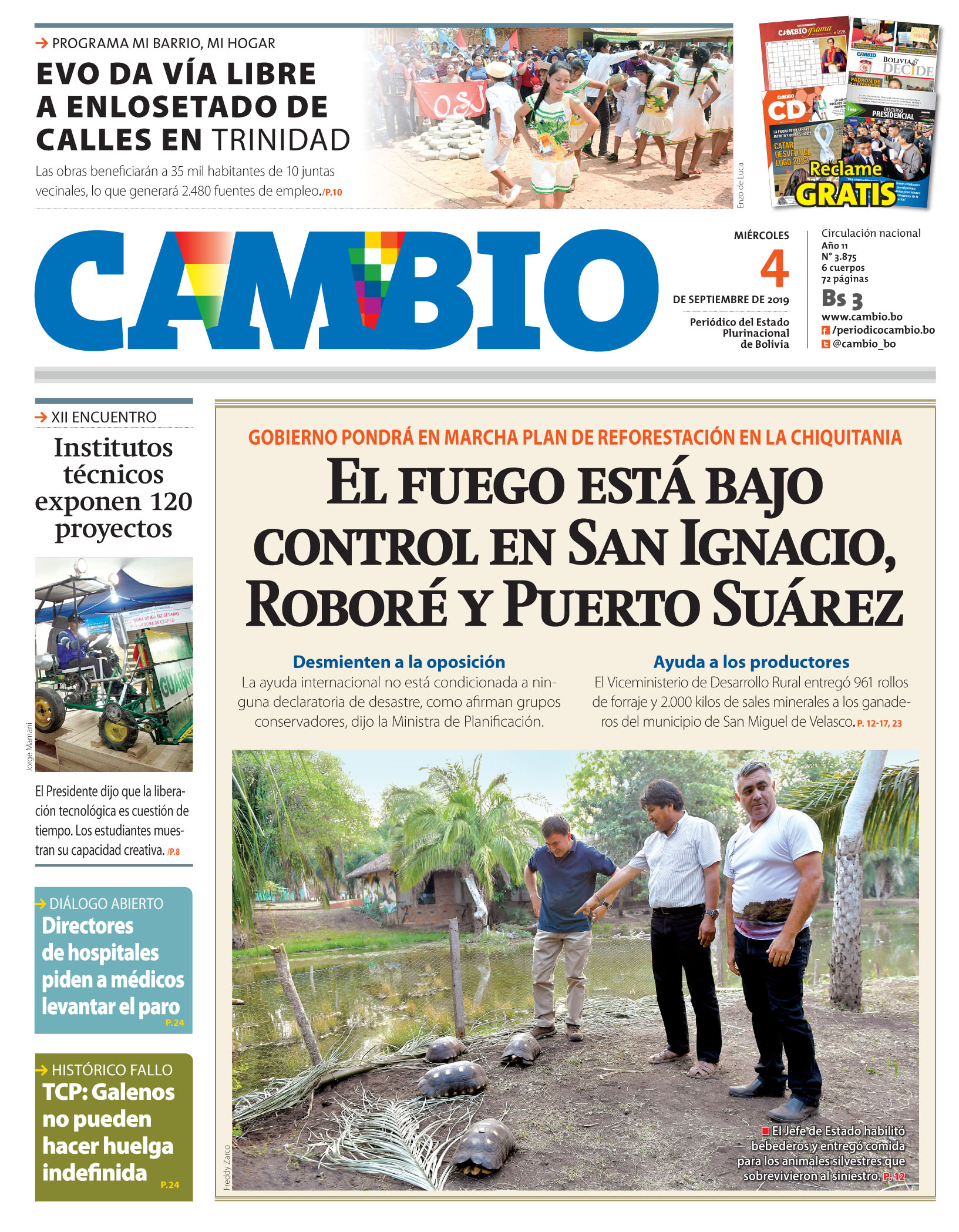 Edición 5-9-2019Portada Edición ImpresaEl Deber – Los Tiempos – El Día – La Razón – Cambio – El Diario – Página Siete – La Estrella del Oriente